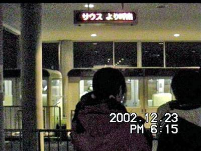 16時頃、連絡ゴンドラに乗ってホテルに戻り、今夜はタワーのバイキングへ行く。 サウスからモノレールでタワーに行くが、この時間帯はサウスウイングまでモノレールが入ってこないので、中間のスキー場乗り場まで歩いて、そこからモノレールに乗る。 モノレールはスキー場からタワーに帰る人で混雑し、満席状態。 |