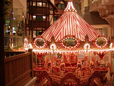 吹き抜け部分に大きな2階建てのメリーゴーラウンド |