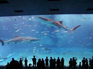 大阪海遊館や名古屋港水族館なども行ったけど、ここがやっぱり最高だ。 じんべいが3頭も居る。 マンタも何匹?か居た。 なんといっても水槽(窓)の巨大さ。人間が小さく見える。 横方向からも見れるけど、横面は一枚窓ではなく、柱がイッパイあって迫力に欠ける。 |