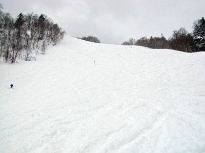 ずっと降り続いた雪でサラサラの膝パウ状態!(12:19) 最初はソロリソロリと滑っていたが、膝まで埋まってもほとんど抵抗無くターンできるので、もう最高に気持ち良くて、もらった1日券をフルに活用して1人で何度も滑った。
