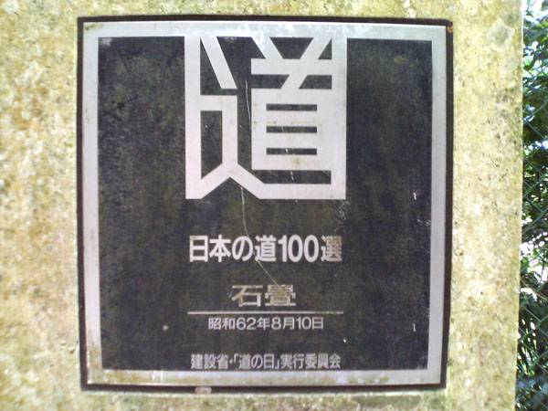 道百選のプレートは日本を表しているらしい石組みの上に有る。