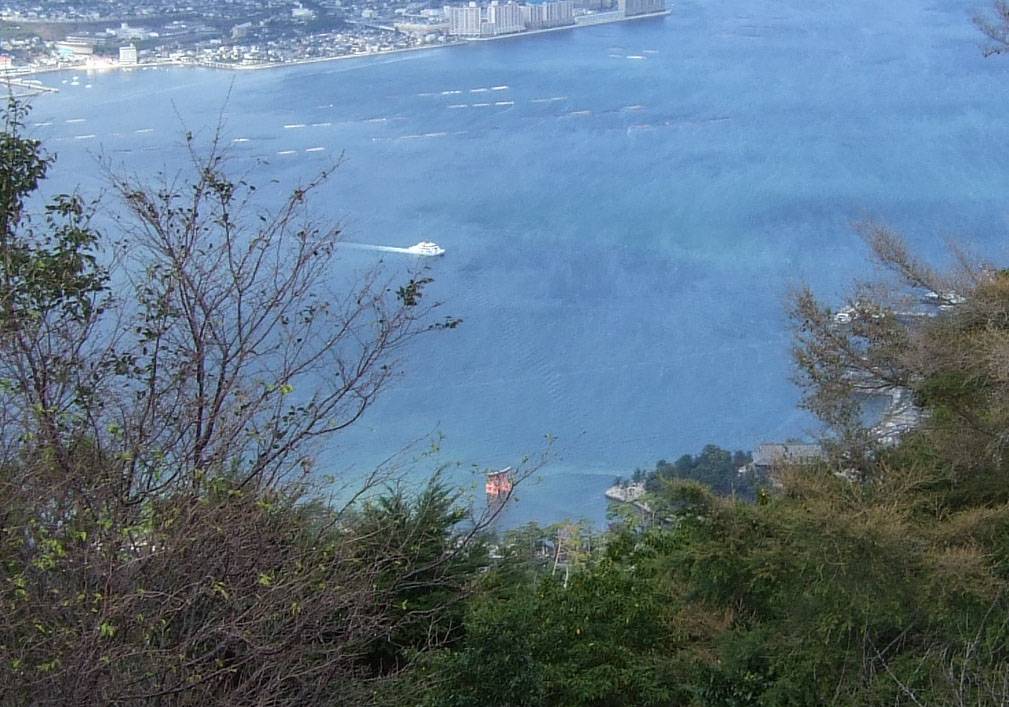 岩のすぐ上に見えるのが阿多田島、その向こうが屋代島、更にその向こうが四国らしい。