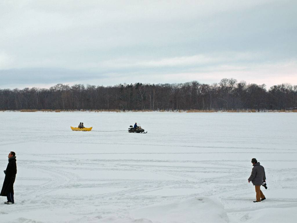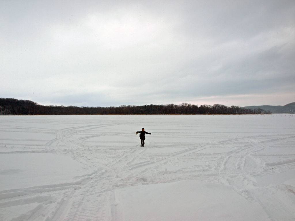 湖の氷の上という感触は全然なく、大地の雪の上と同じ感じ。
