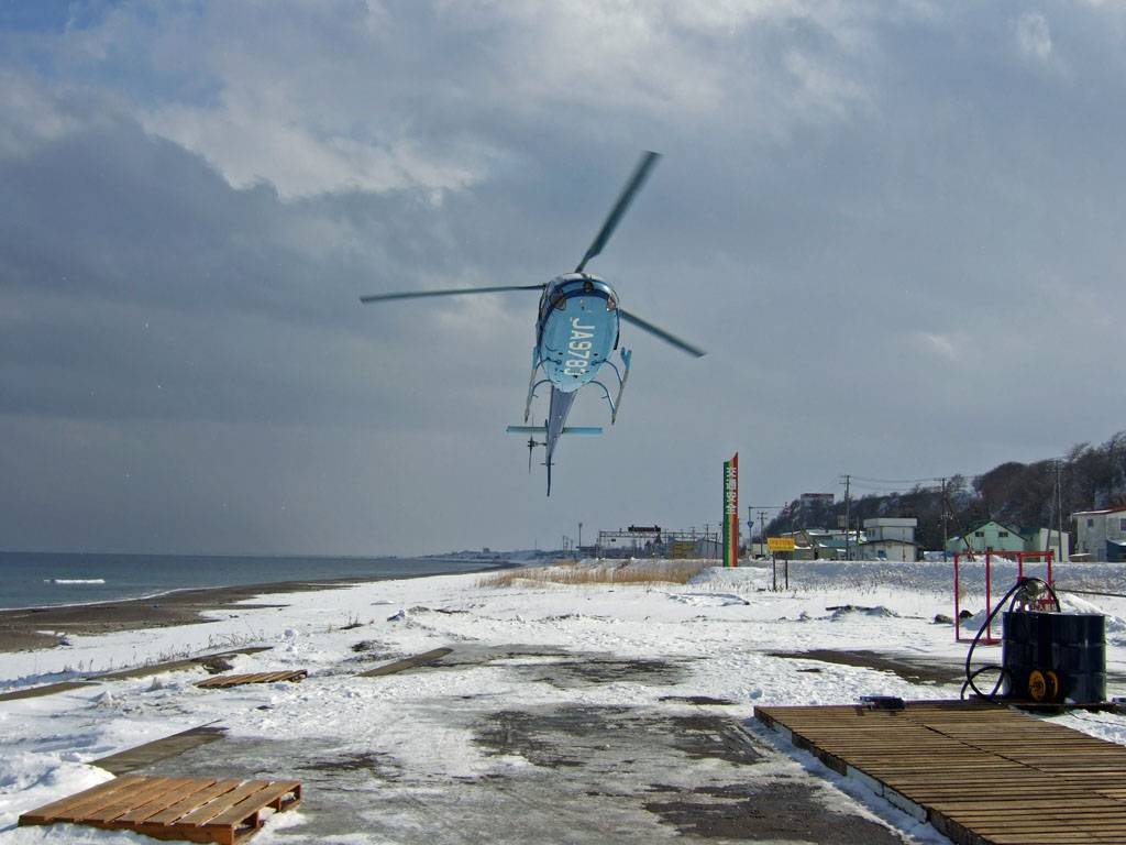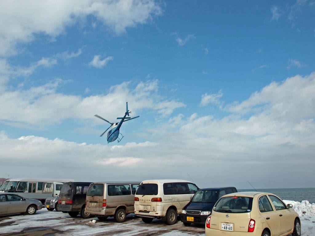 バスに乗ってきたのは16人で、ヘリコプターには4人づつ、4回に分かれて飛ぶ。