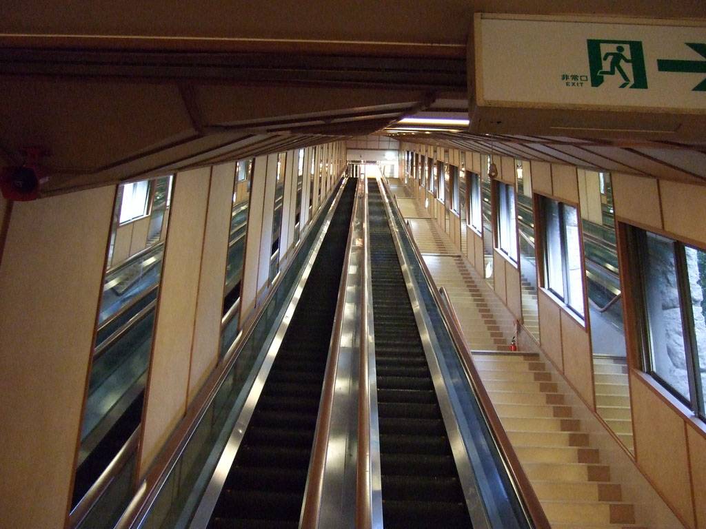 まずはエスカレータ(スペースウォーカーと言うらしい)に乗って「山上館」へ行って見る。