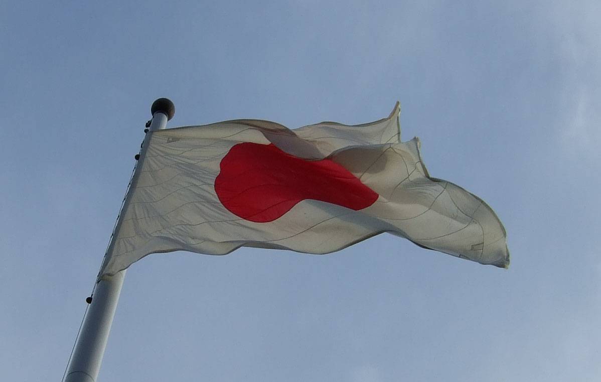 大注連縄の手前には、日本一の日の丸がはためいている。