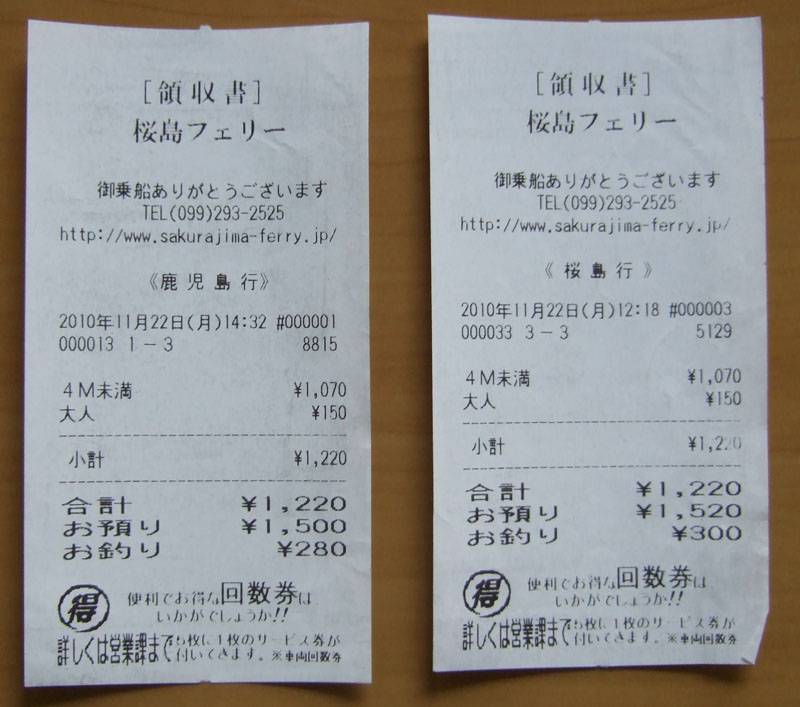 係員はチラッと車の中を見て人数を確認し、1,220円です。