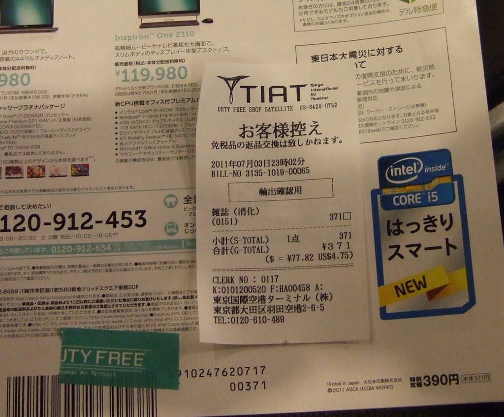ところで、売店で雑誌を買ったら、「搭乗券をお願いします。」