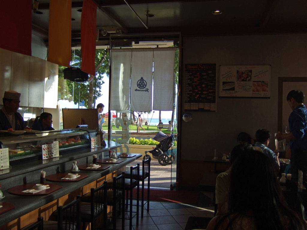 夕食はワイキキビーチ前のふるさと寿司に決定。