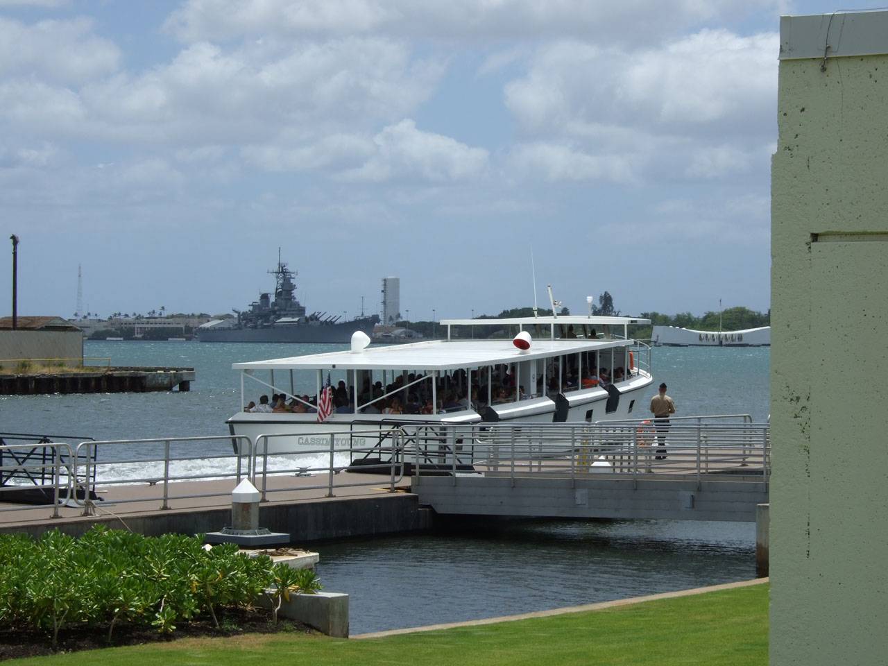 アリゾナ記念館へ渡る船を横目に見ながら帰りのバス停へ向かう。