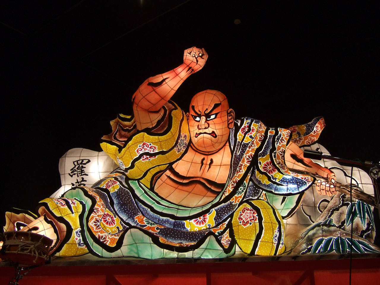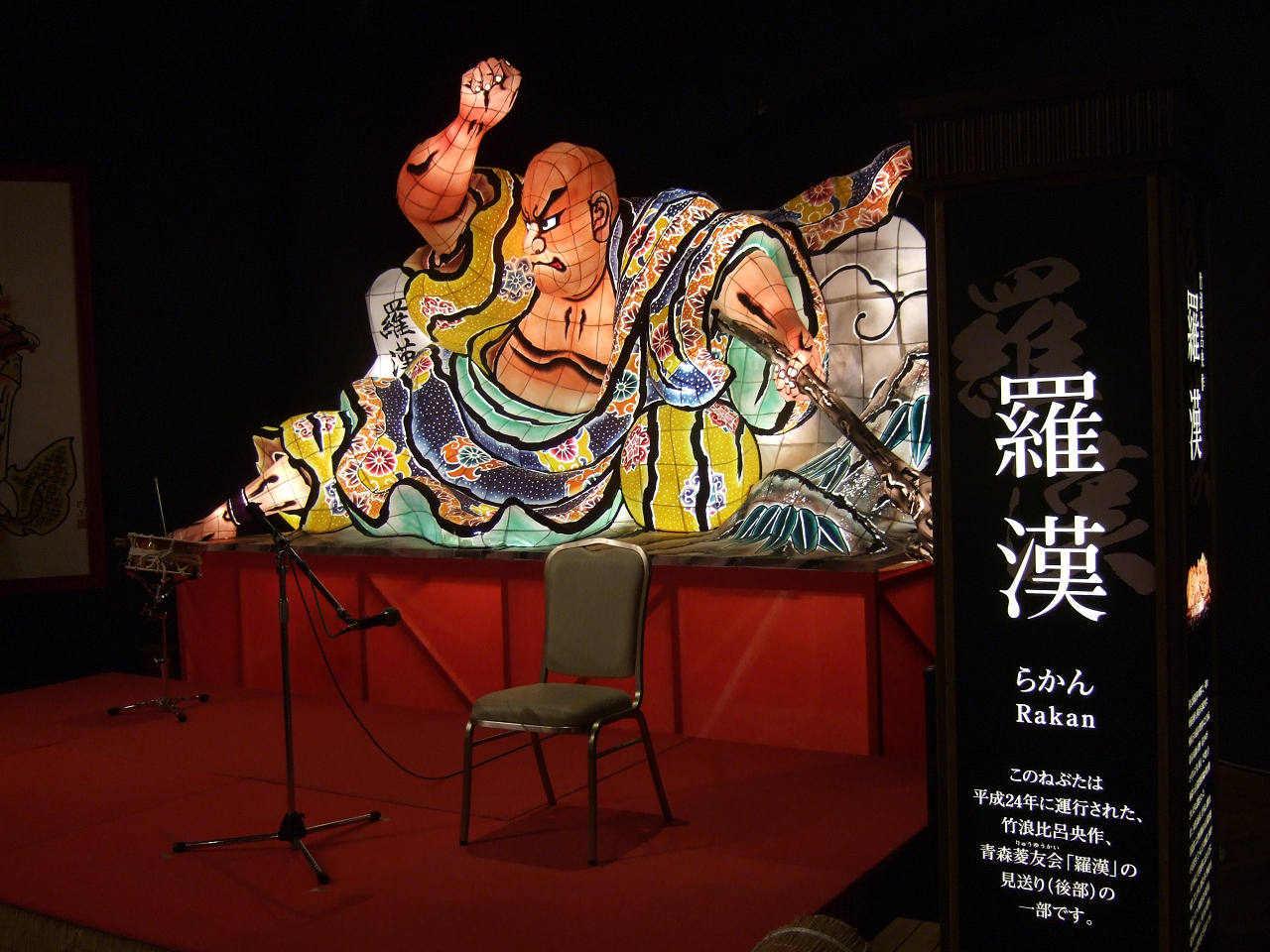 じゃわめぐ広場ステージには本物のねぶた「羅漢」の一部が展示されている。