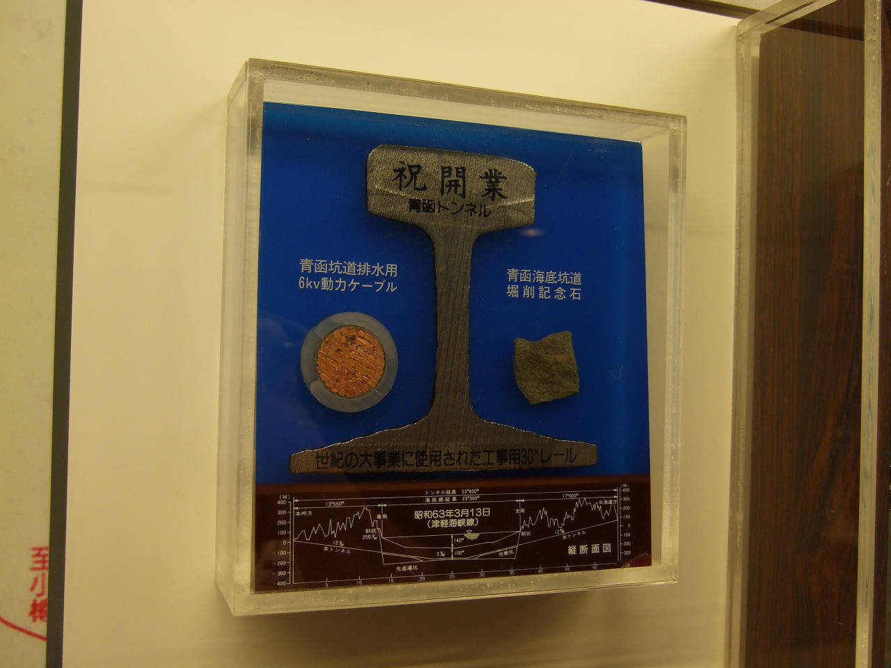 さて、翌朝もツルツル温泉を楽しんで部屋に戻る途中、青函トンネル開通記念レールを発見。