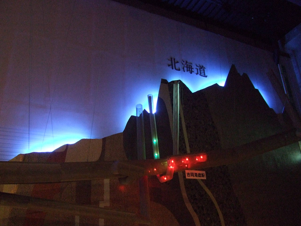 記念館は2階吹抜けのホール全体が、青函トンネルを地下から見上げたジオラマになっている。