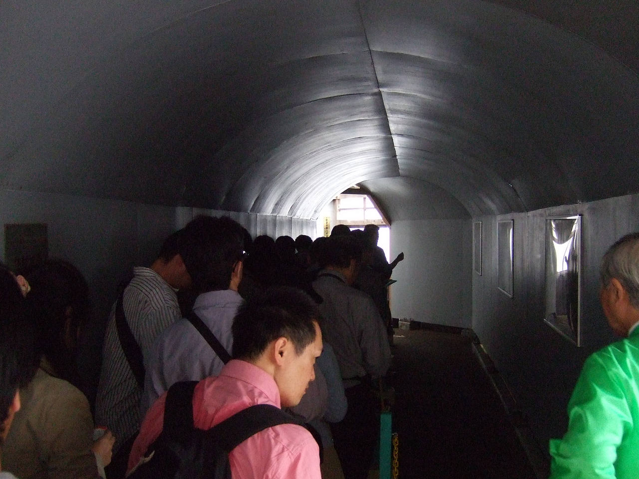 緑のおじさんに続いてケーブルカー駅から渡り廊下を通り記念館に入る。