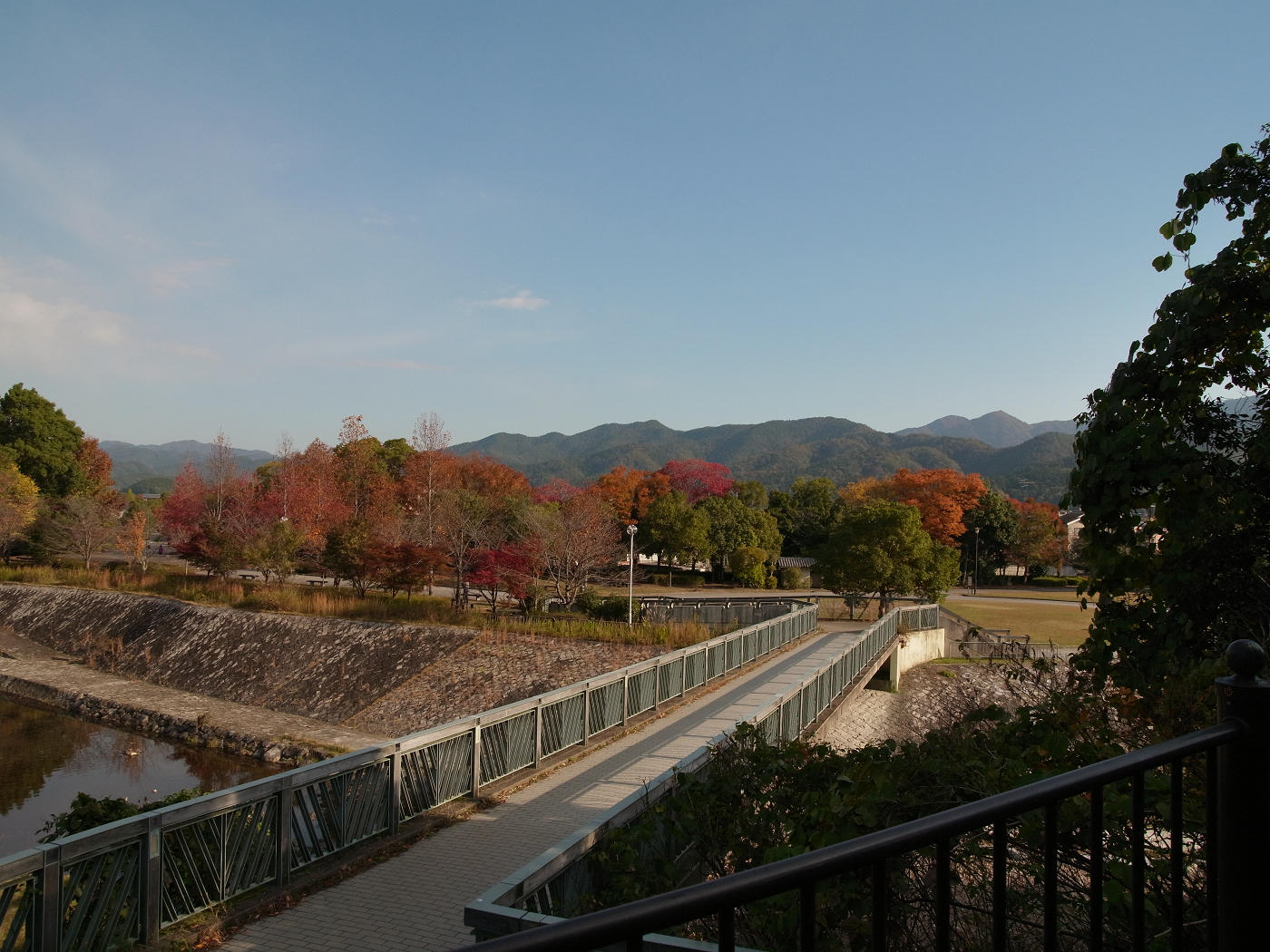 緑の山と、モミジとはちょっと違う地味目な紅葉もイイね。