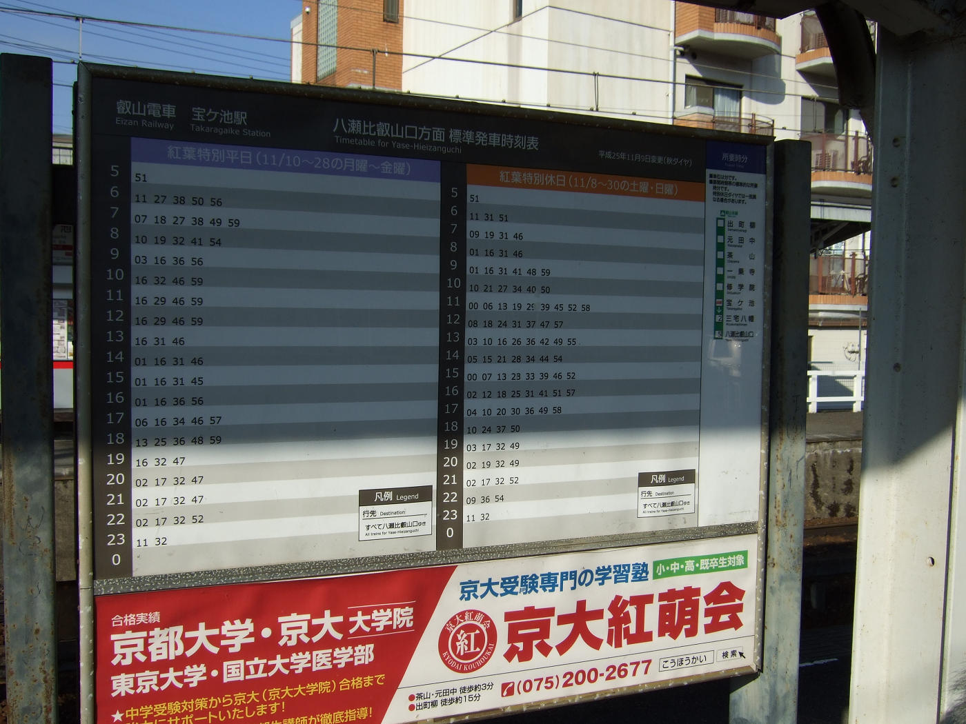 ここは、11/8から11/30まで紅葉特別時刻表で運行されているらしい。