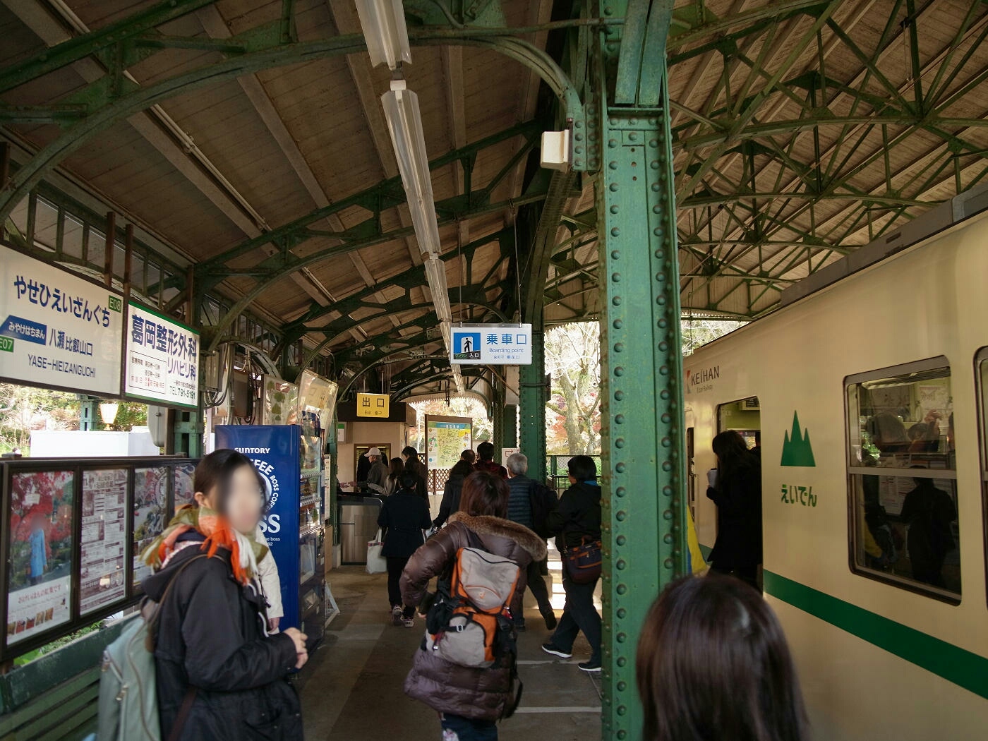 紅葉特別時刻のおかげか、電車はすぐにやって来て数分で終点、八瀬比叡山口駅に着いた。