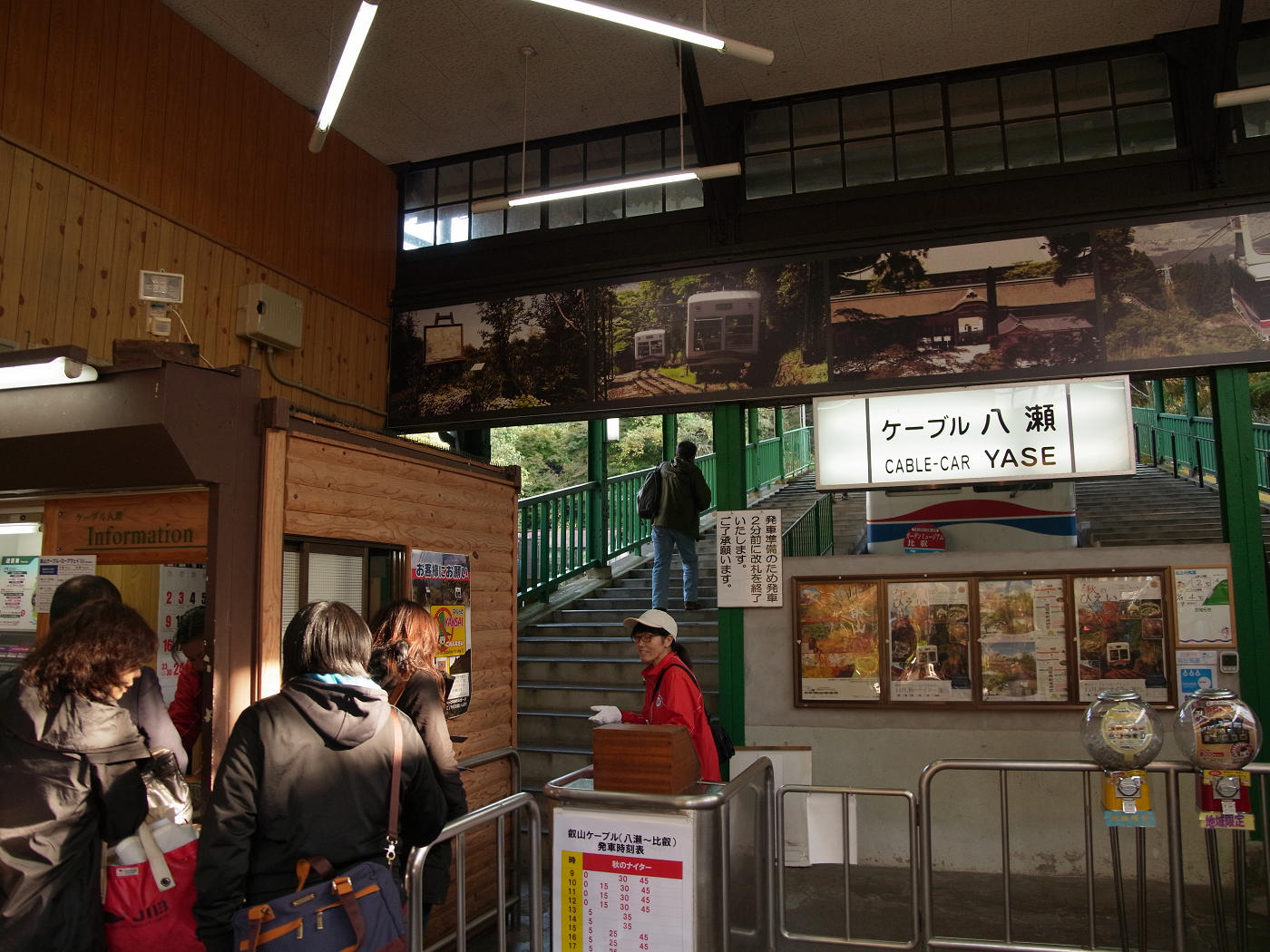 ちょうど駅員さんが「9時30分発ケーブルカーの改札中です!切符をお求めの上、改札口へお並び下さい!」