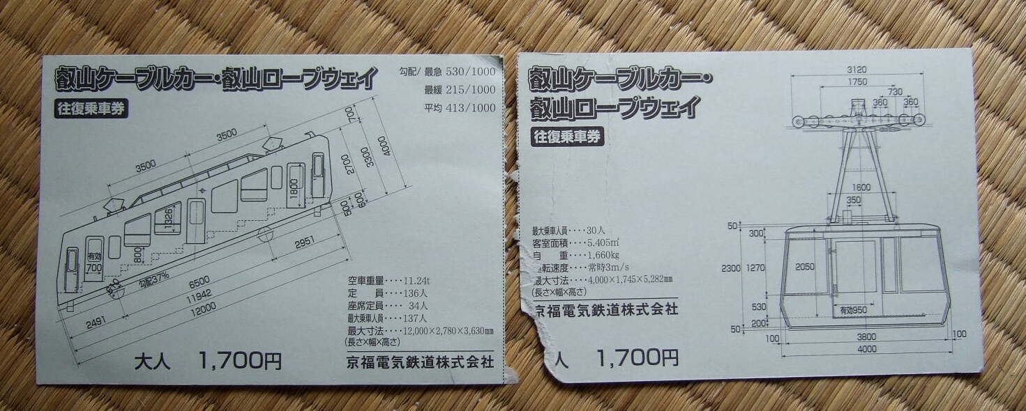 切符はケーブルカーとロープウェイ乗継往復で1,700円だ。