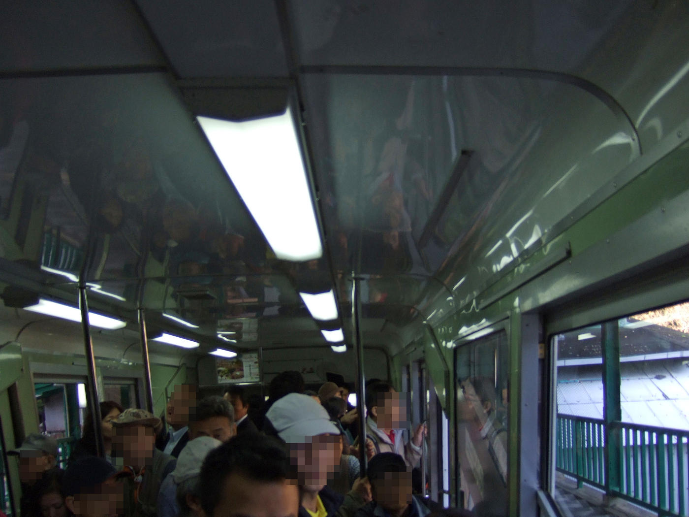 改札口はそんなに混んでいなかったけど、ケーブルカー車内は通勤ラッシュ並みの混雑だ。