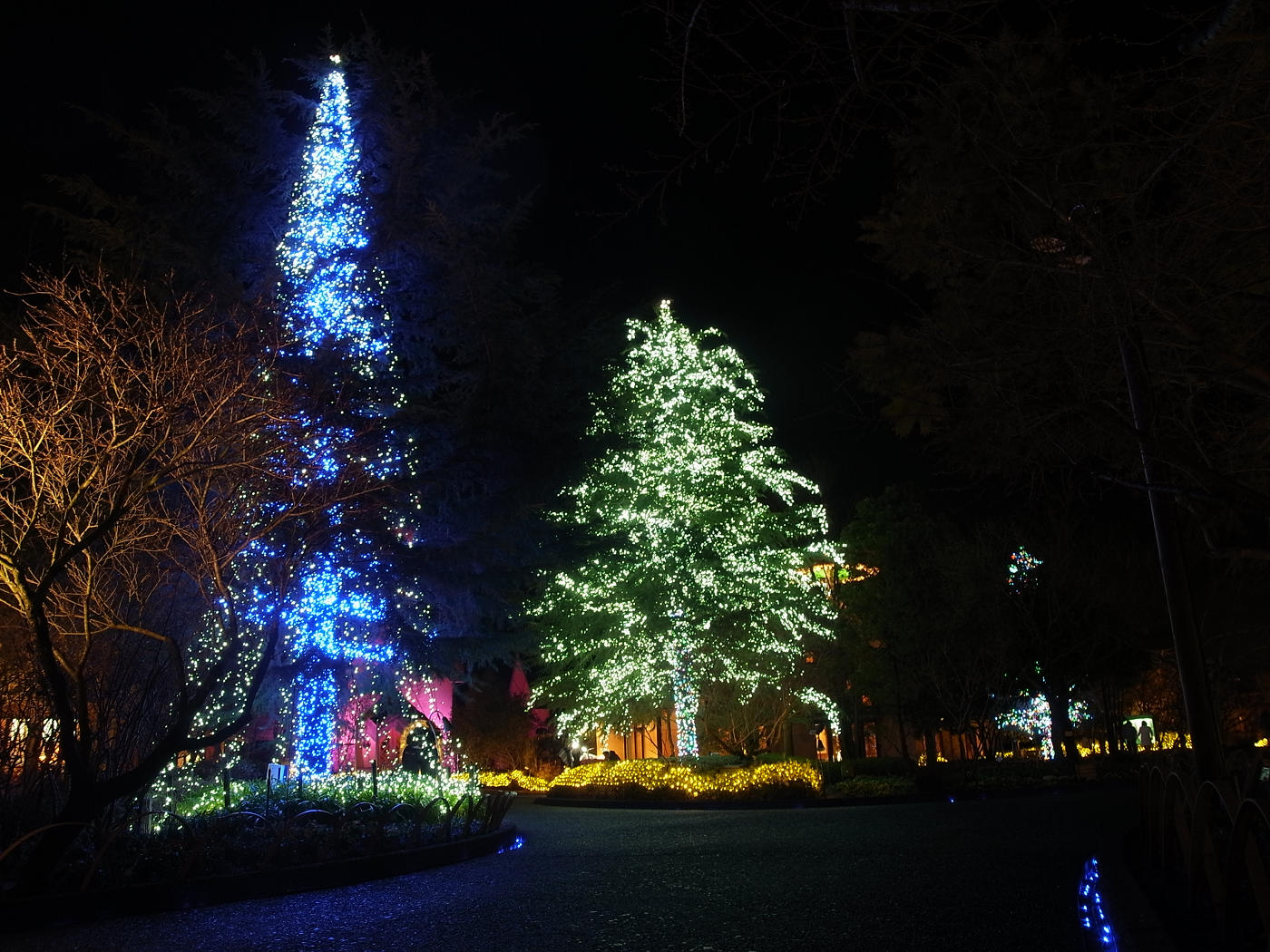 やっぱり、ほんの少し横にズレるとイルミネーション川の間隔が詰まって見えて綺麗だ。