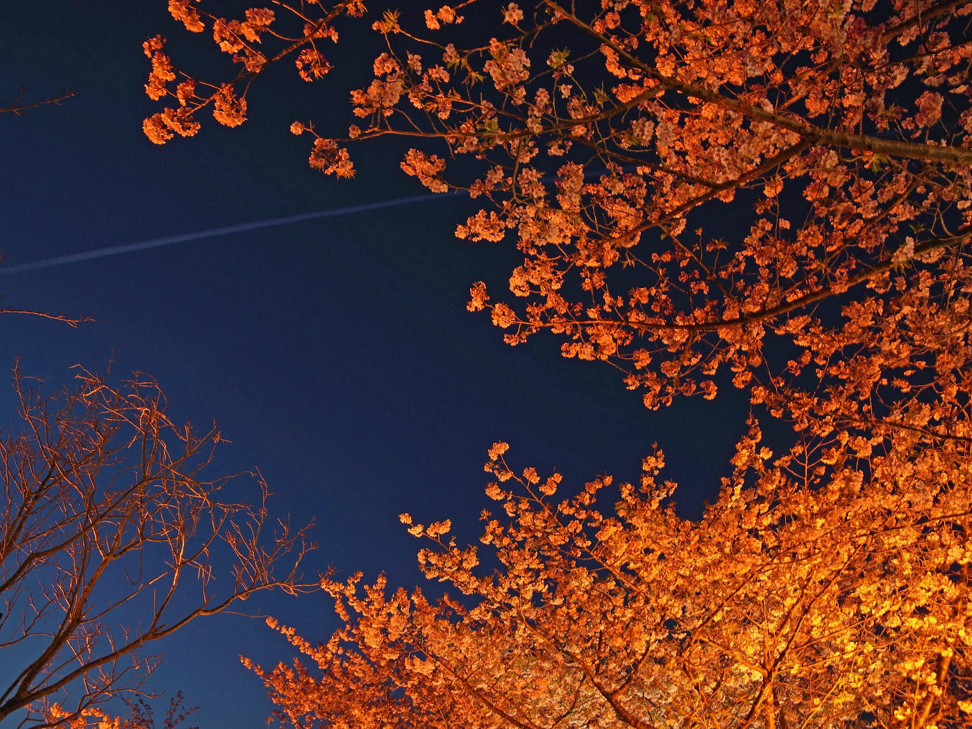 でもライトアップが暗めなので、なかなか月と桜の両方に露出が合わせられない…