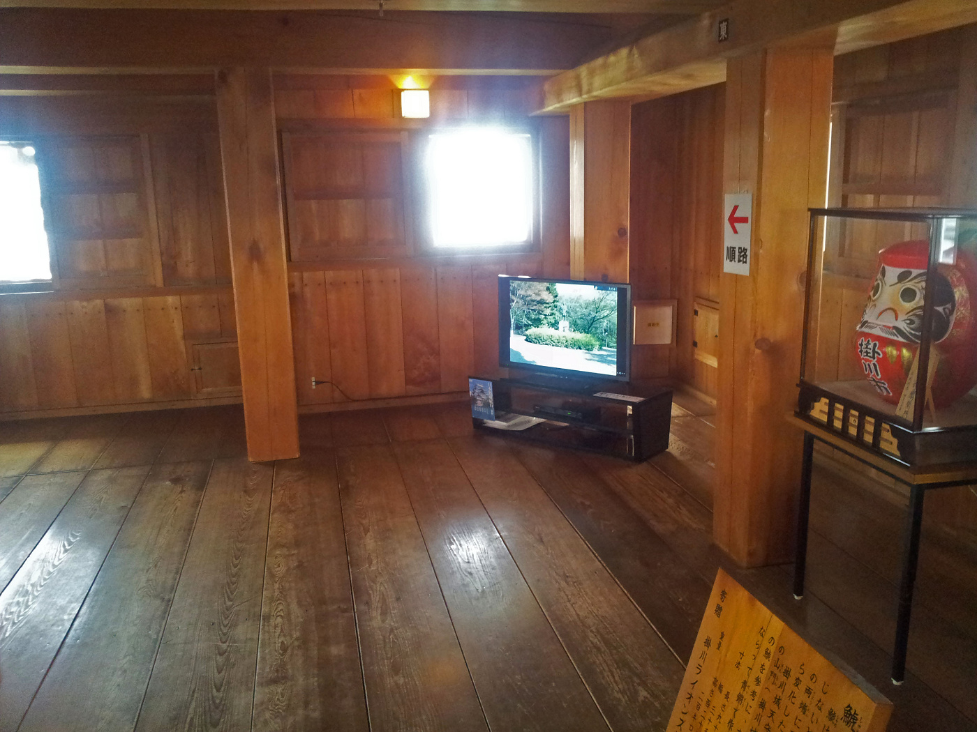 なぜかダルマが展示されていて、片隅のモニターで掛川城DVDが放映されている。