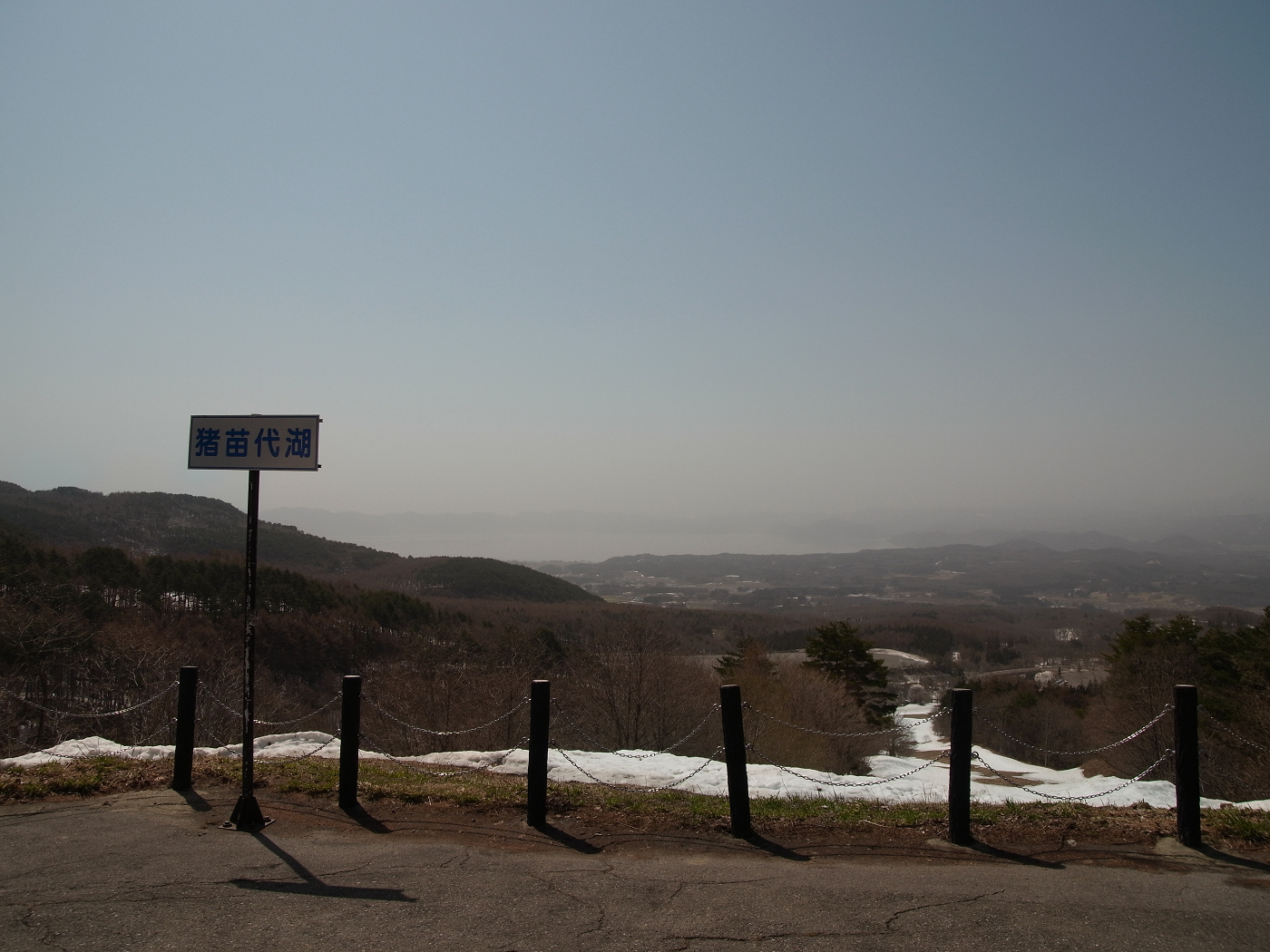 反対側には猪苗代湖が見える。と書いてあるけど、どこが湖でどこが空か?よく分からない。