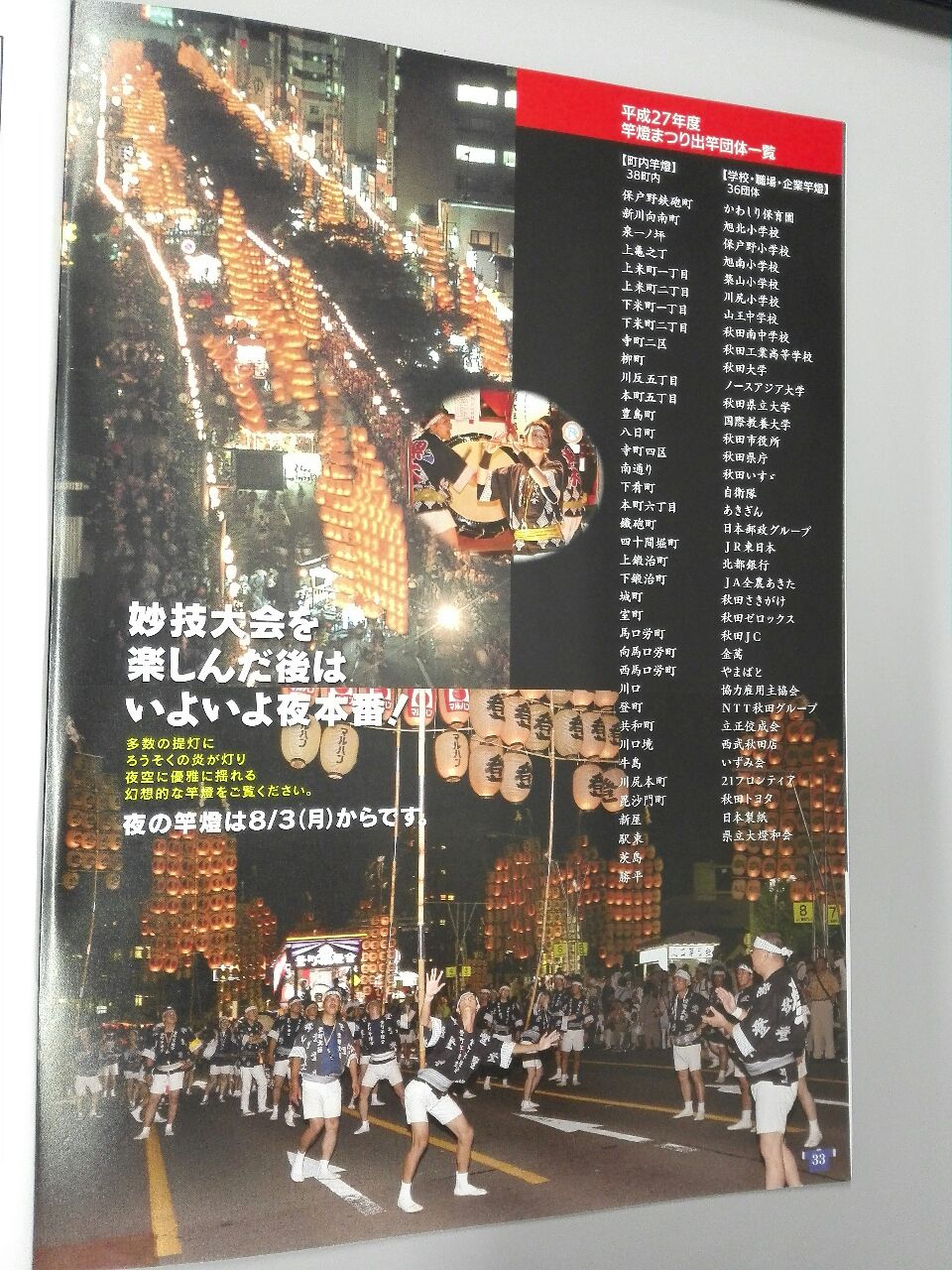 夜竿燈の出場チームは妙技大会出場の59チームよりかなり多い。
