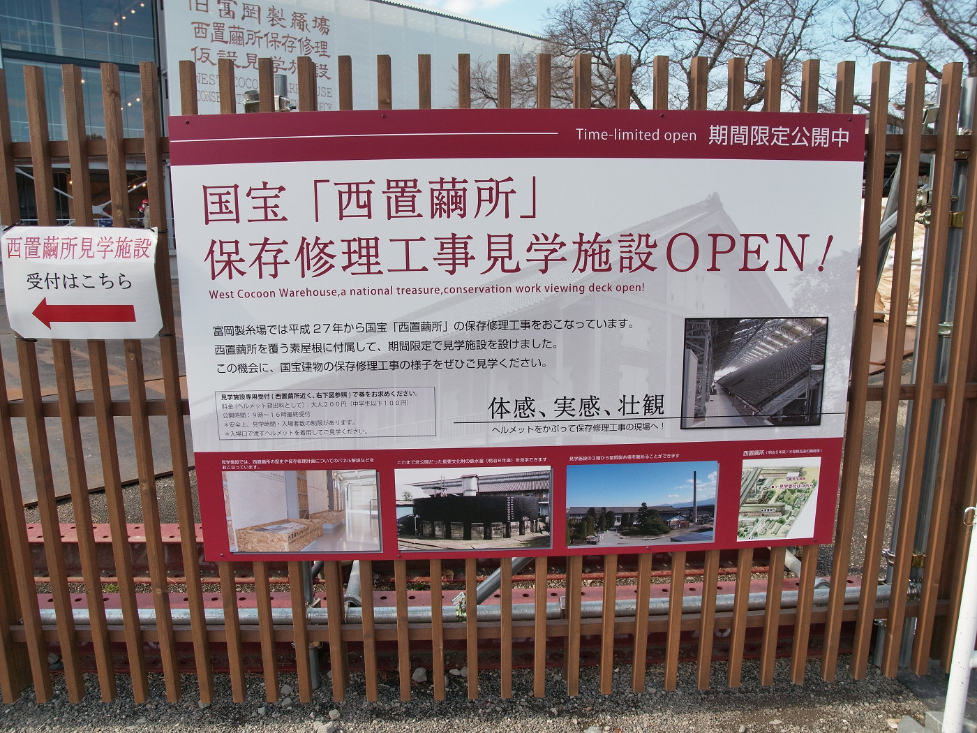東置繭所の右側(北側)奥の、富岡製糸場紹介映像をじっくり(20分)見てから左側へ入っていく。