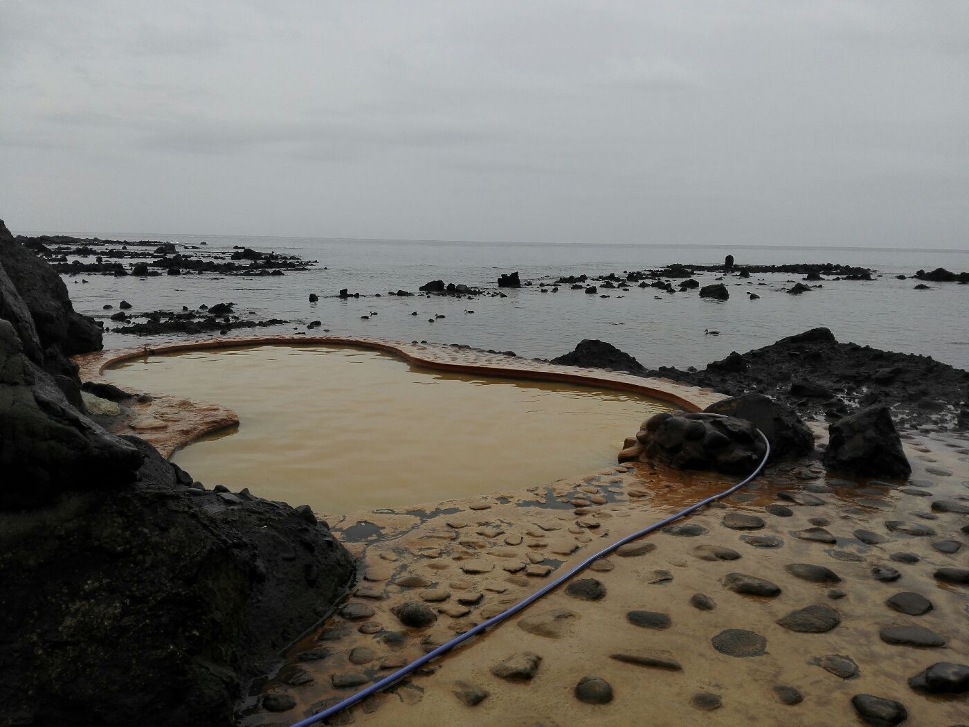 熱い源泉がガポっコプっとどんどん入ってくるから、温度調節の為にホースで水を入れているらしい。