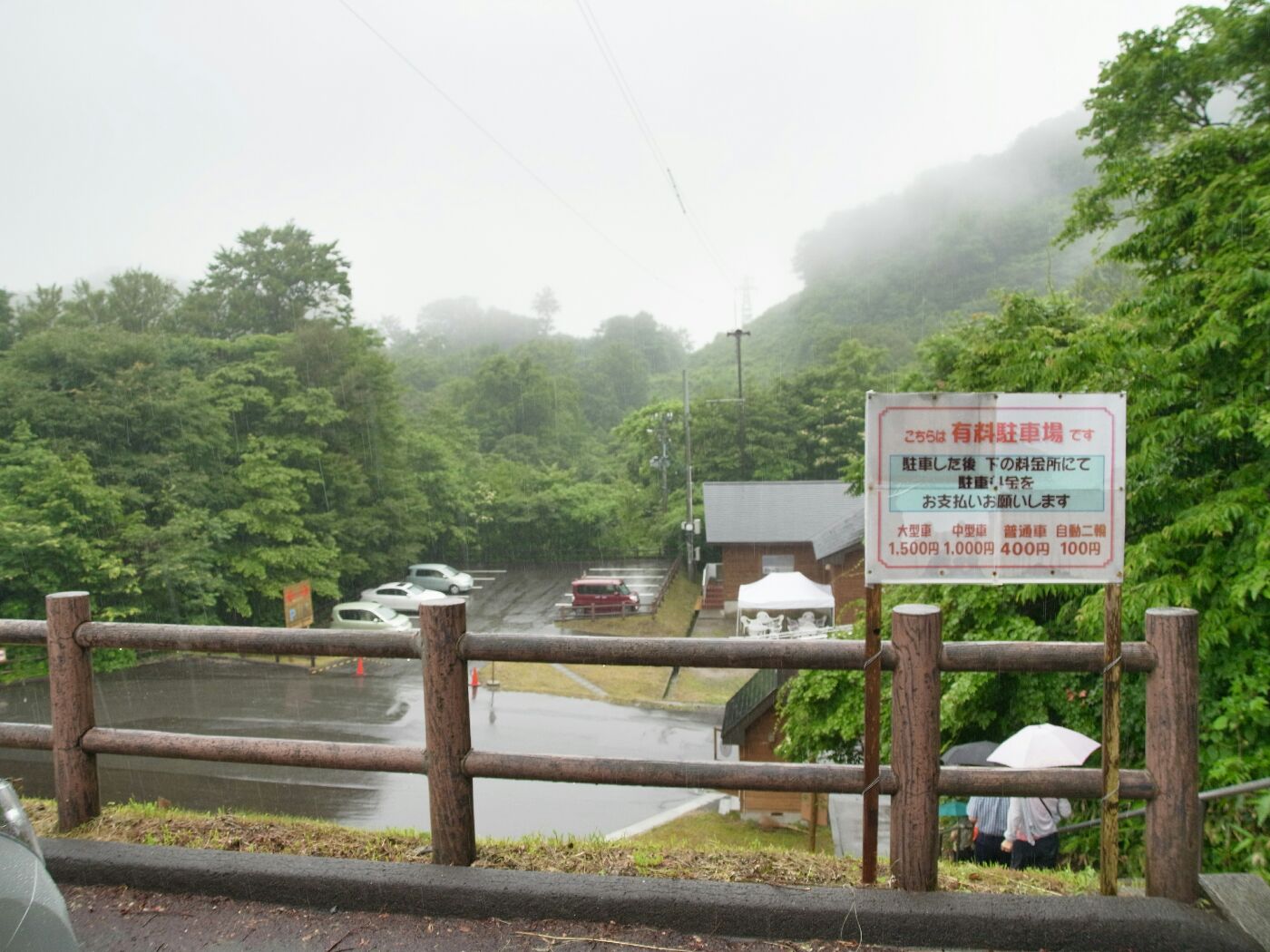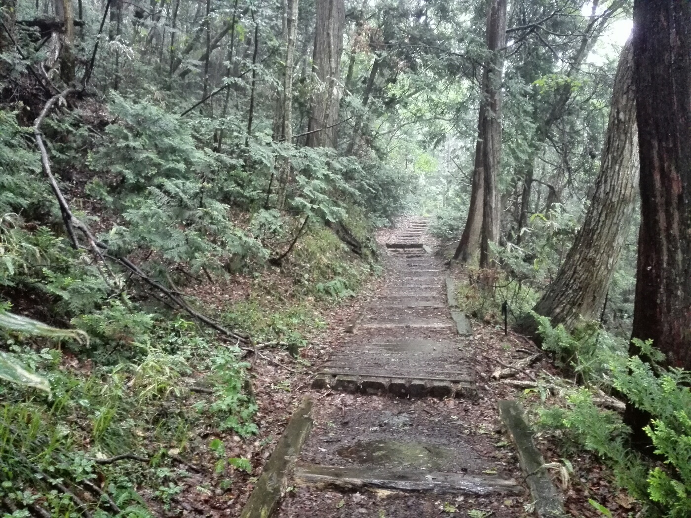 あいにくの雨の中、ポンチョを着込んで山道を登っていく。