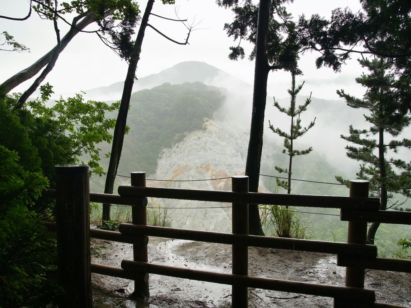 この崖下に出る山道も有るらしいけど、この天気ではちょっと無理だな。