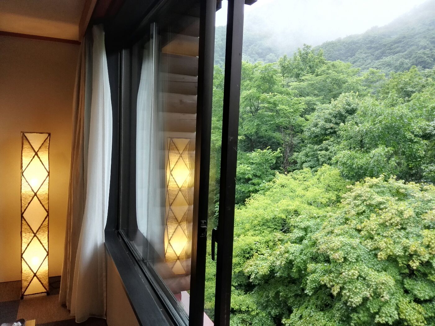 風呂場は他に客がいたので写真は撮れなかったけど、大きなガラス窓から見える渓流の緑が綺麗で気持ち良かった。