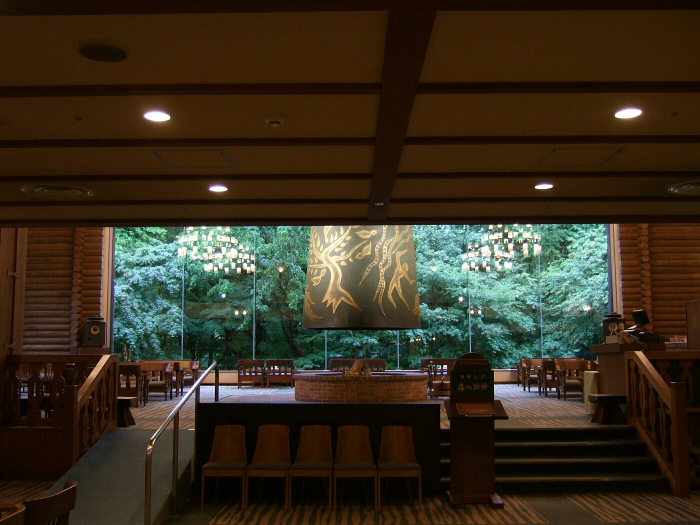 暖炉「森の神話」のあるスペースは「ラウンジ森の神話」になっていて、昼はアップルパイなどのスイーツで有名なカフェ、夜はカクテルバーになるらしい。