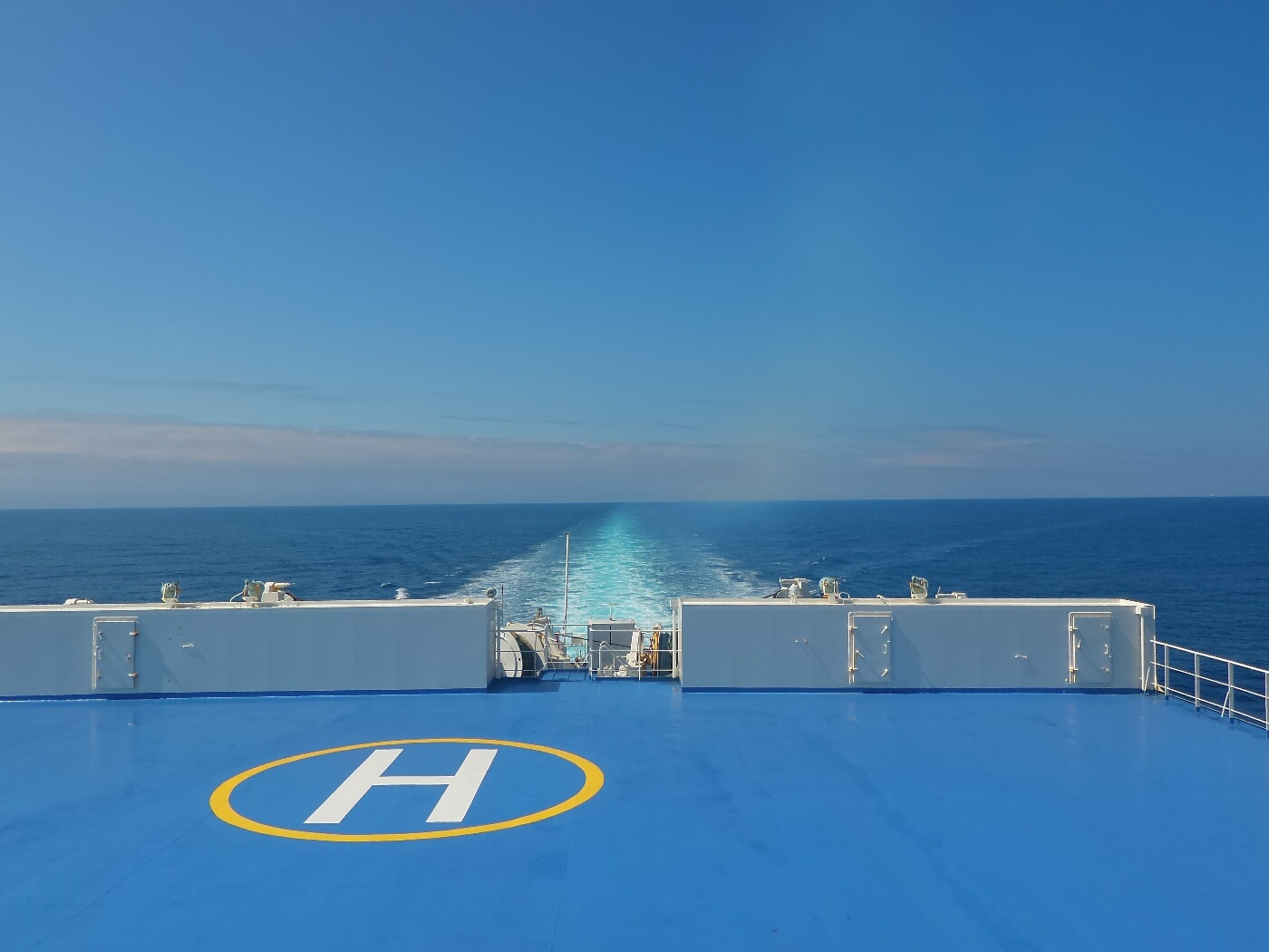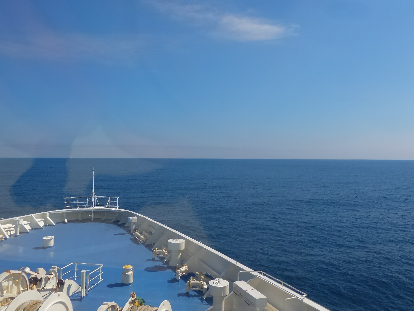 デッキからは前も後ろも横も見渡す限り穏やかな海海海。