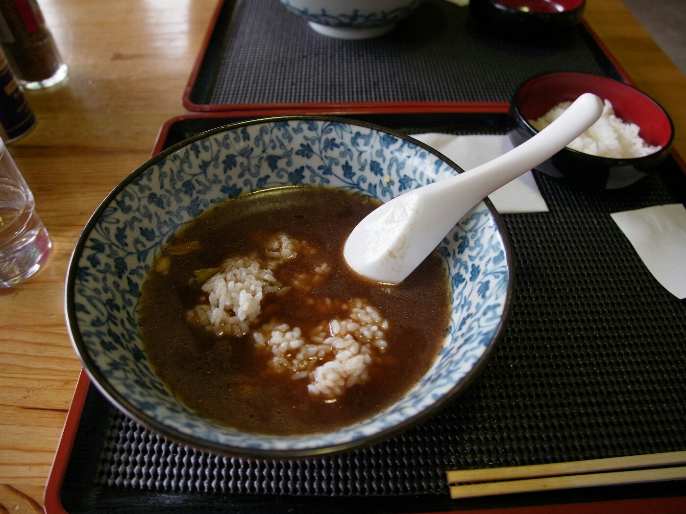 焼きそばを食べた後、スープに御飯を入れて食べるのがシキタリらしい。