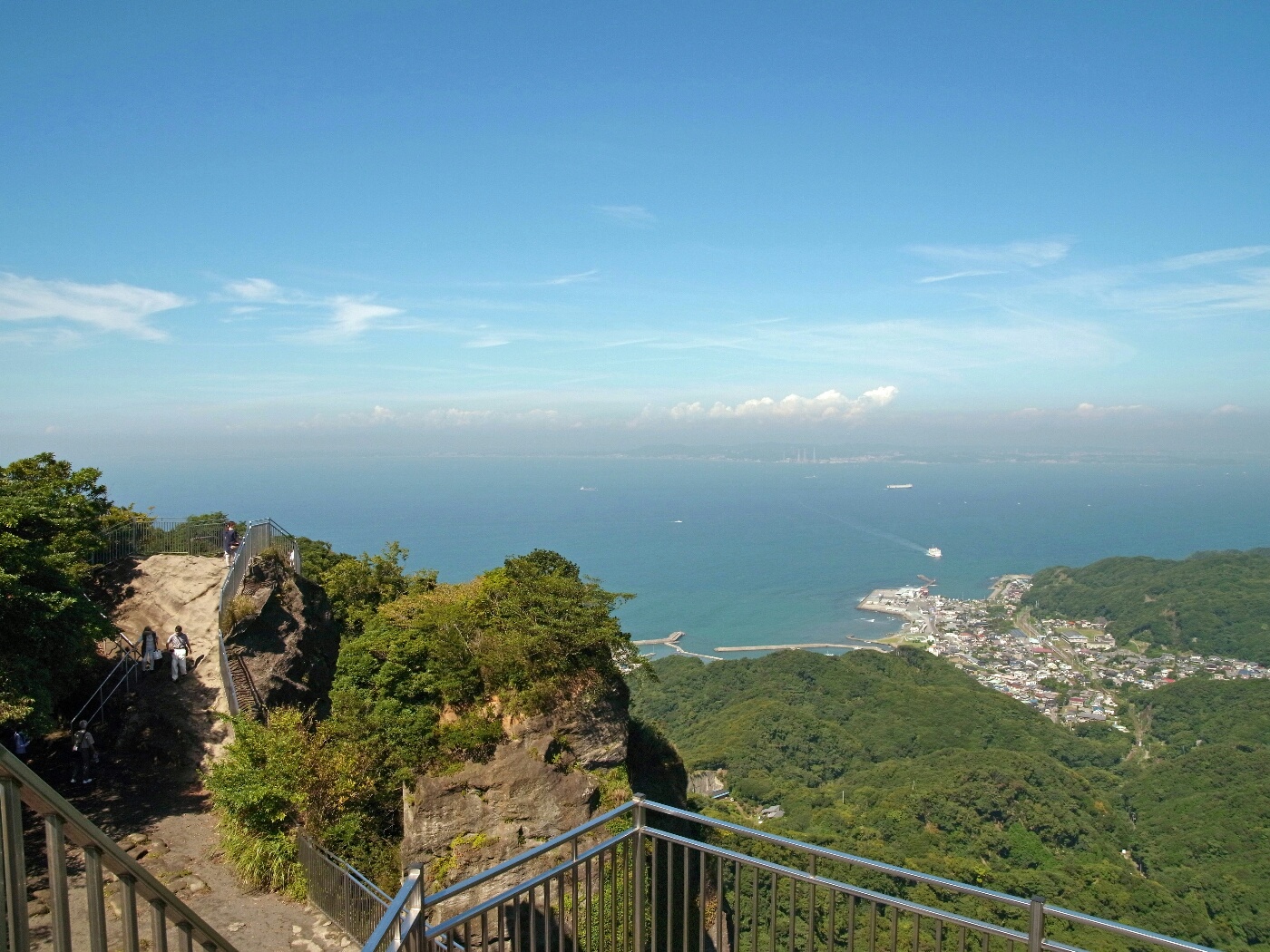南方向には綺麗な海と、モヤに霞む房総半島が続いている。