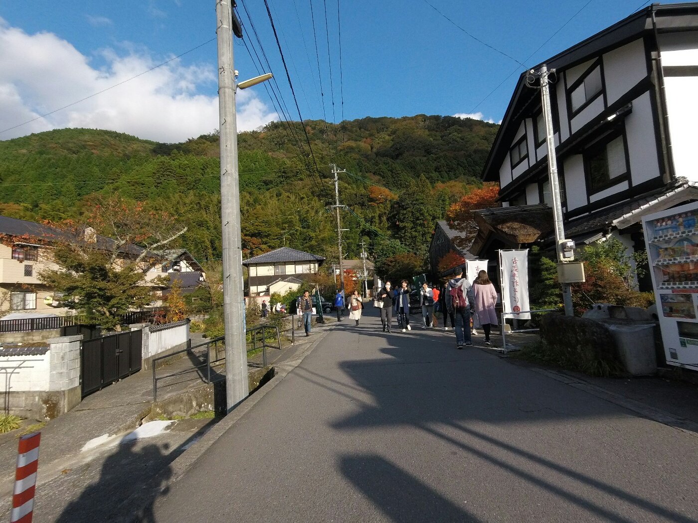 ともかく、コンビニの角を曲がって金鱗湖方面へ狭い道に入ってきた。