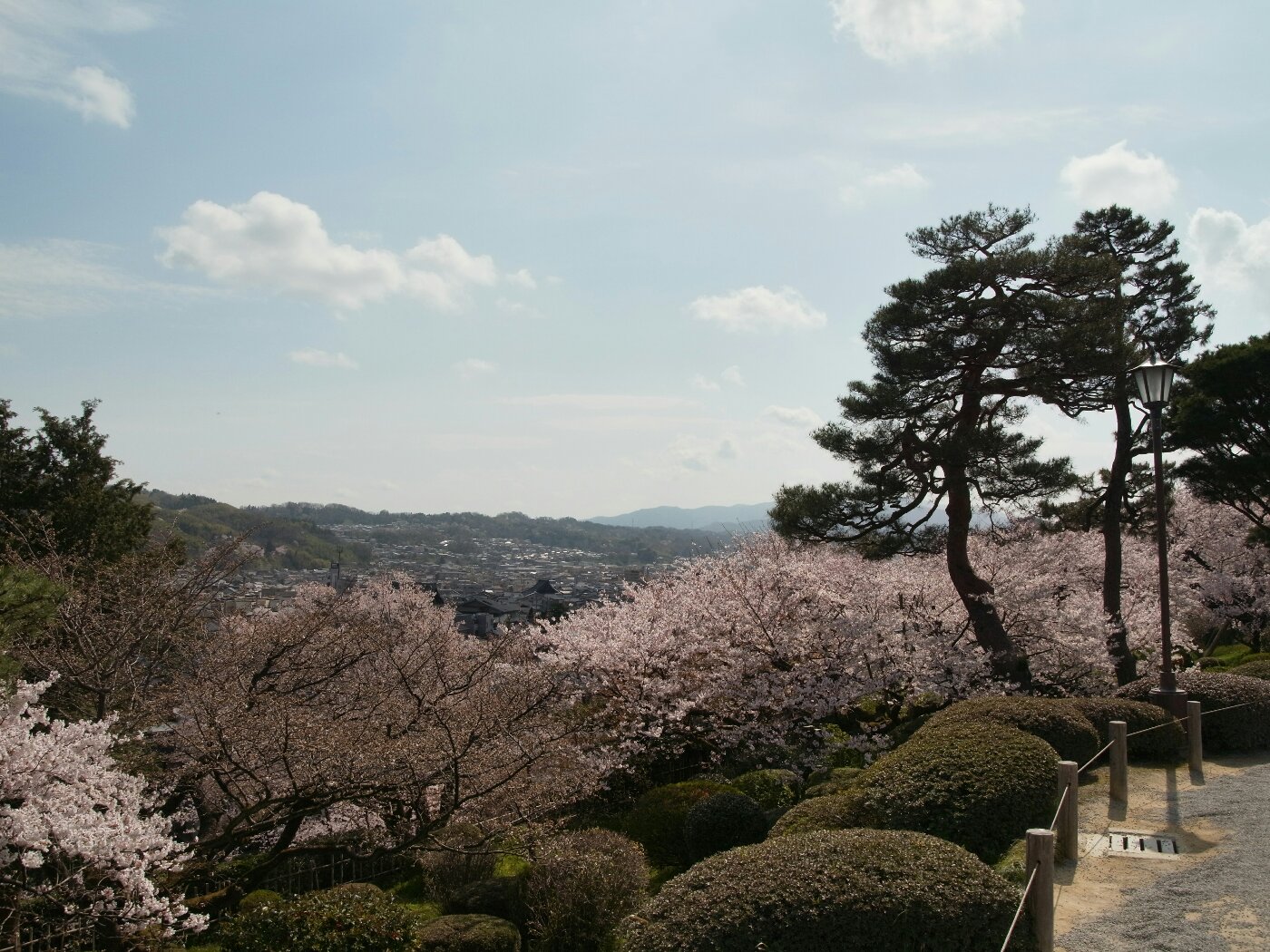 「眺望台」の向こうの「旭桜」は、まだツボミ膨らみかけの状態だ。