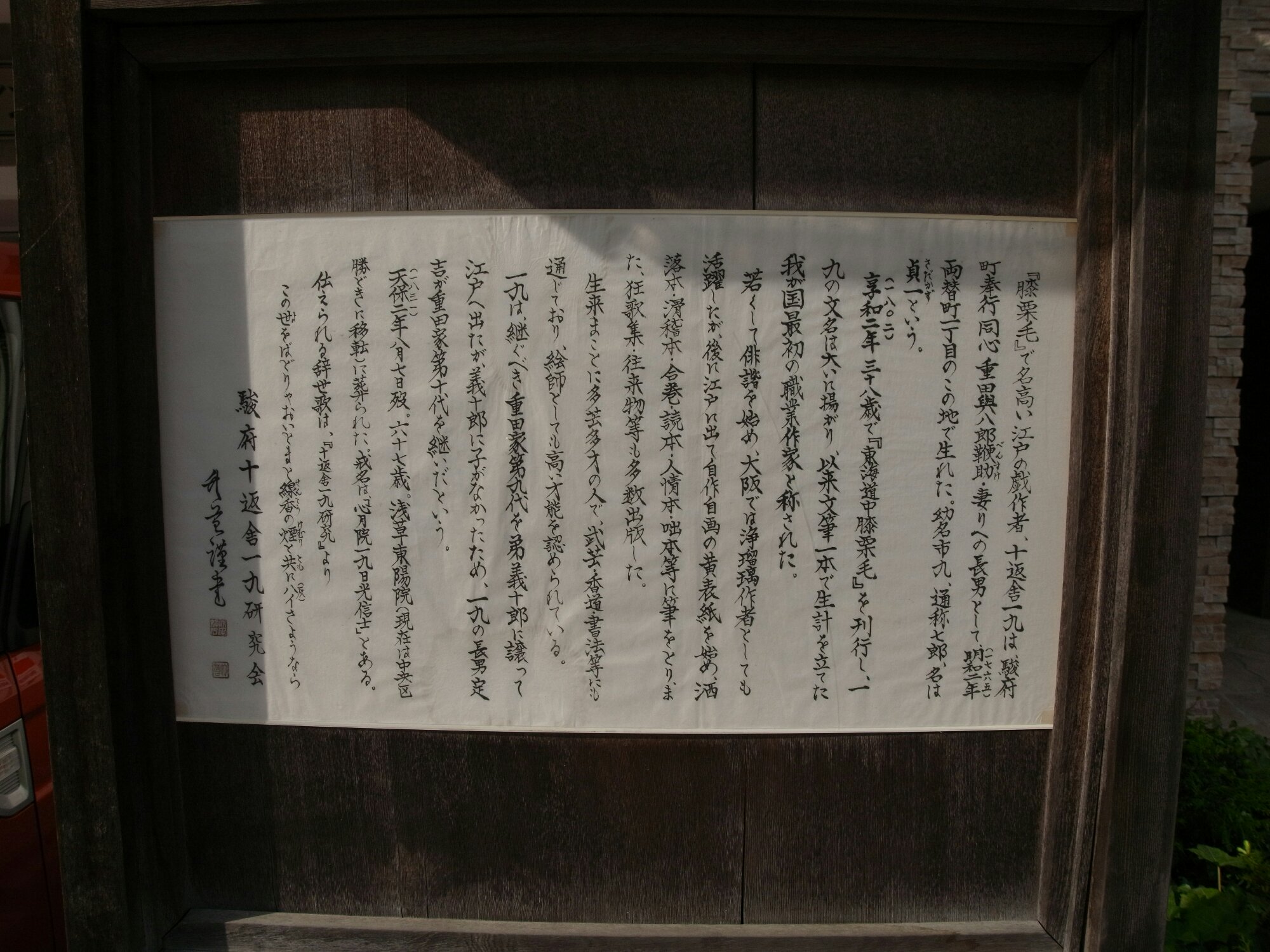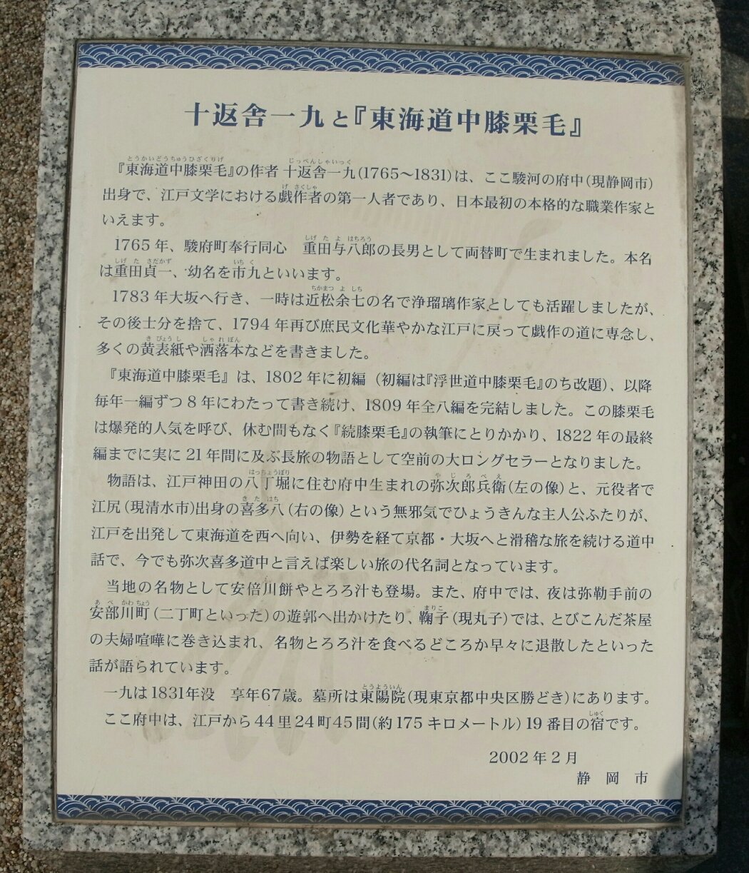 さて翌朝、東海道からちょっとだけ外れて「十返舎一九生家跡伝承地」を視察。