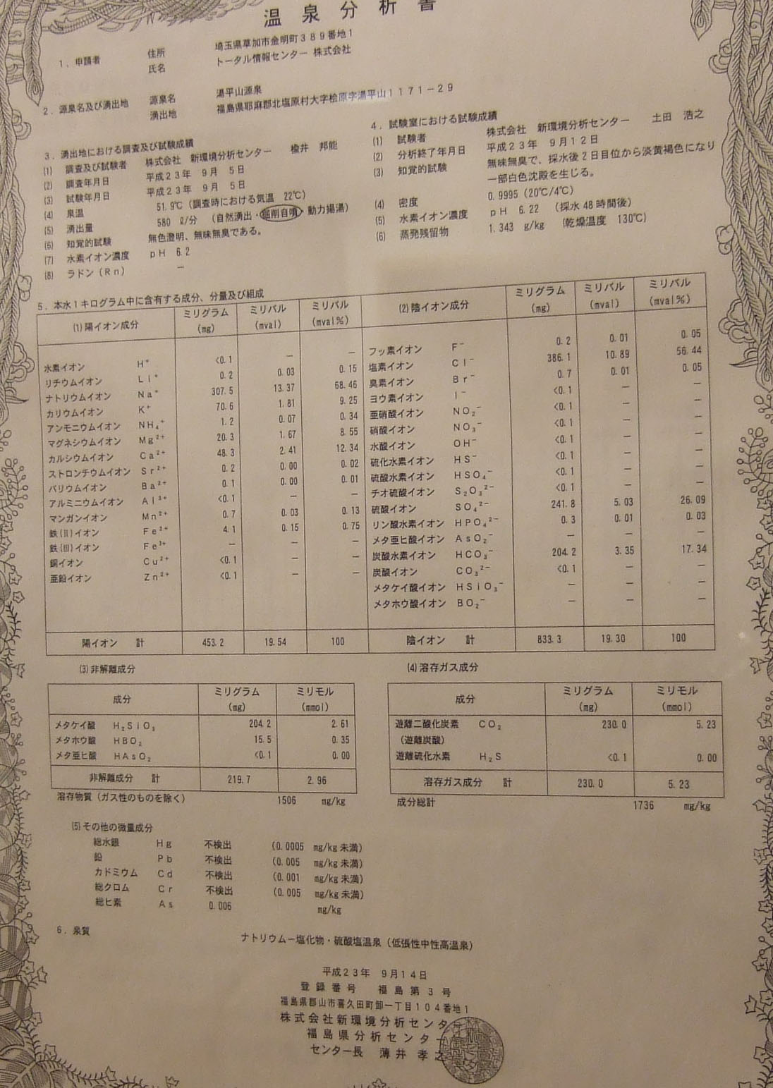 (温泉分析書というモノについても、この時点では..何か貼ってあるな..という程度の認識であった)