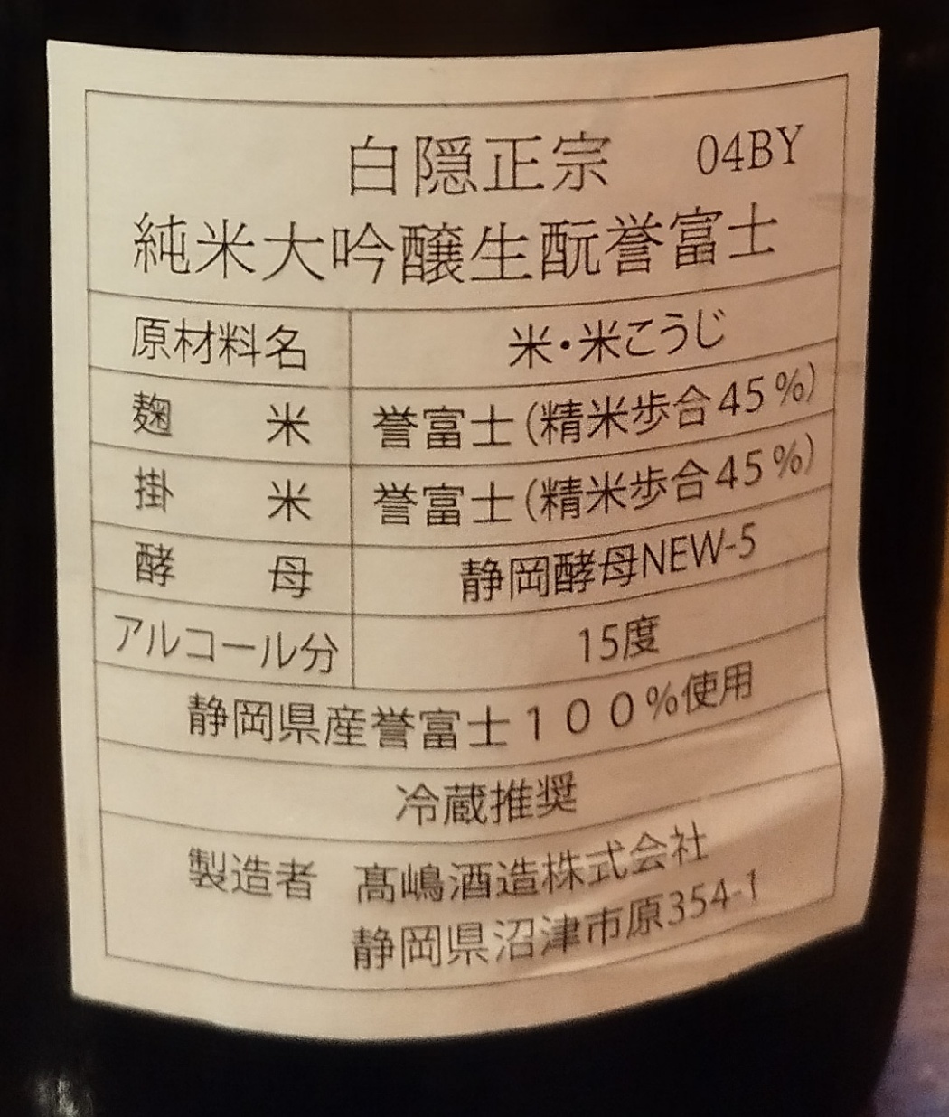 いつごろだったか…たぶん静岡県工業試験場の河村伝兵衛さんが静岡酵母を開発し、静岡の酒蔵に分配した時か…