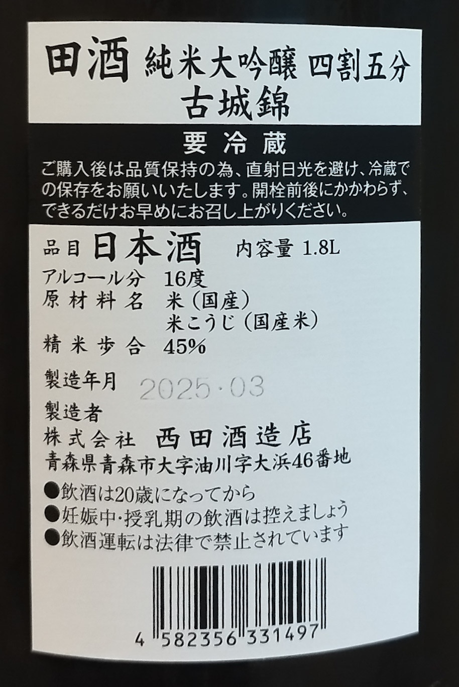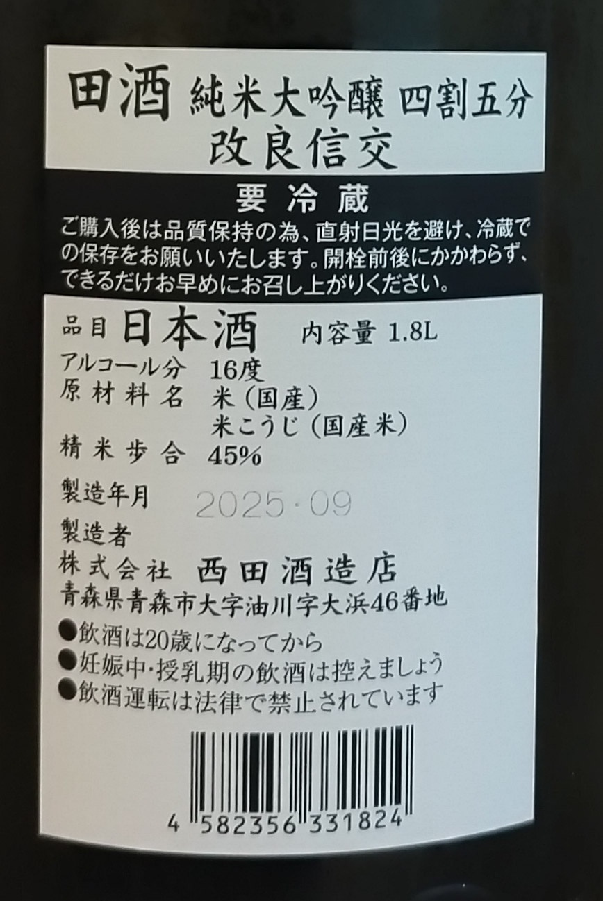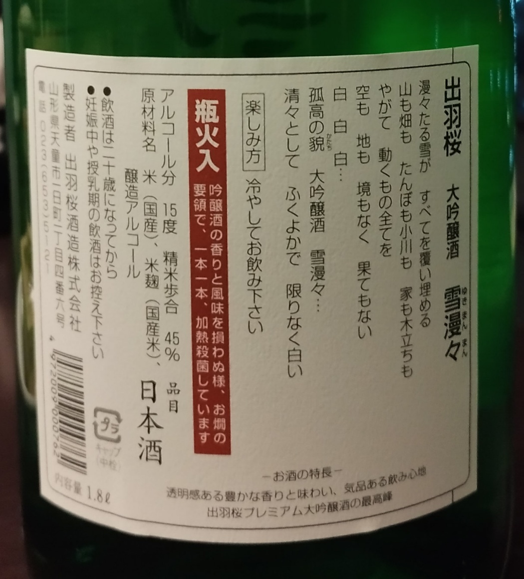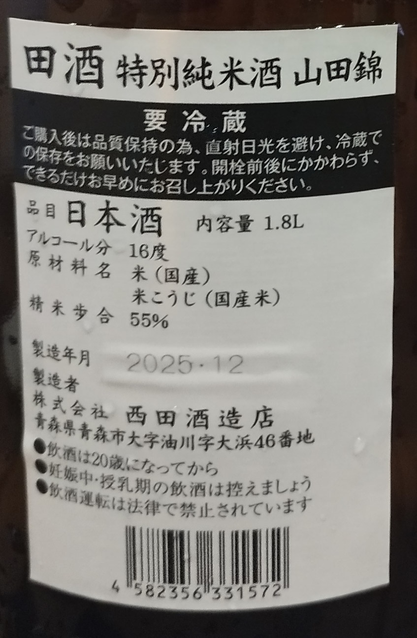 | 2回火入れタンク貯蔵から1回火入れ瓶貯蔵に変わって、要冷蔵になった田酒 前より色が濃くなって、味も濃くなった気がする。 | |||||||||||||