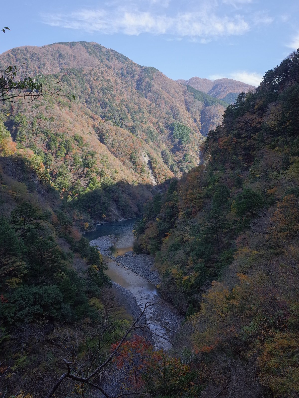 川が微妙にカーブしているから、大間ダムの上部建物までしか見えない。