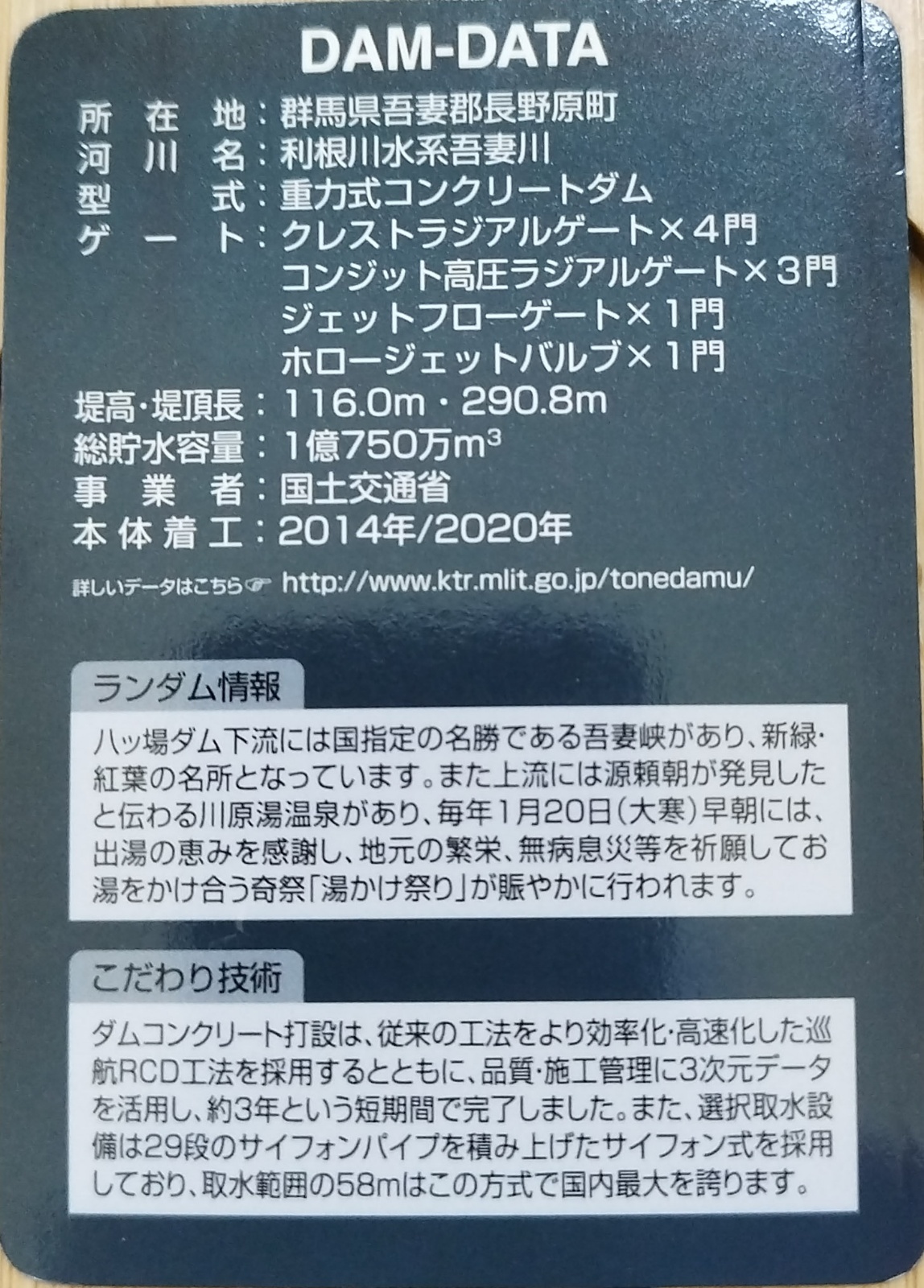 入口から入ってすぐ右のダムカード発券機でカードをゲット。