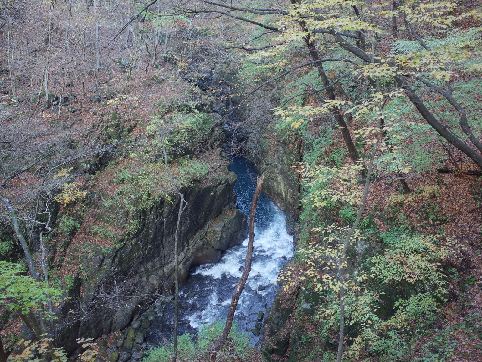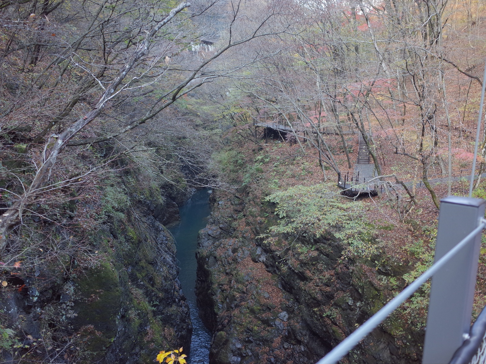 下を流れる吾妻川が見おろせるが、 紅葉はイマイチだ...