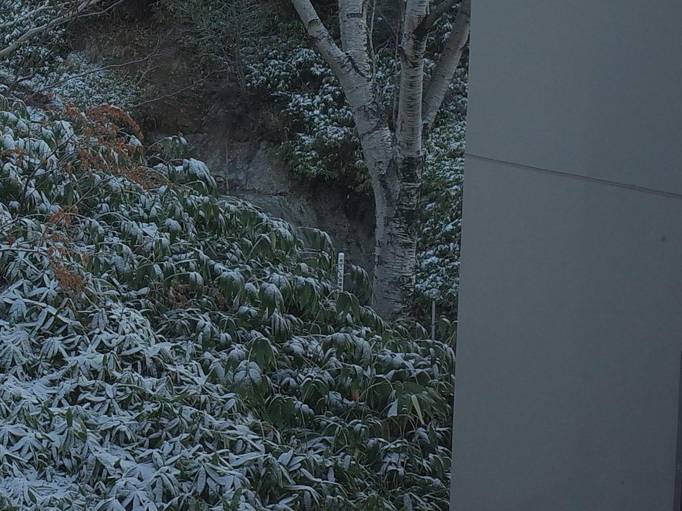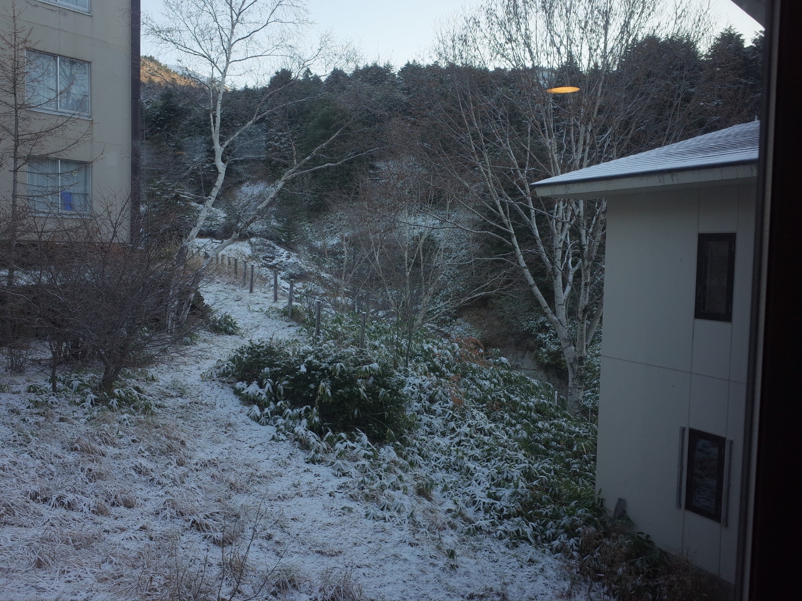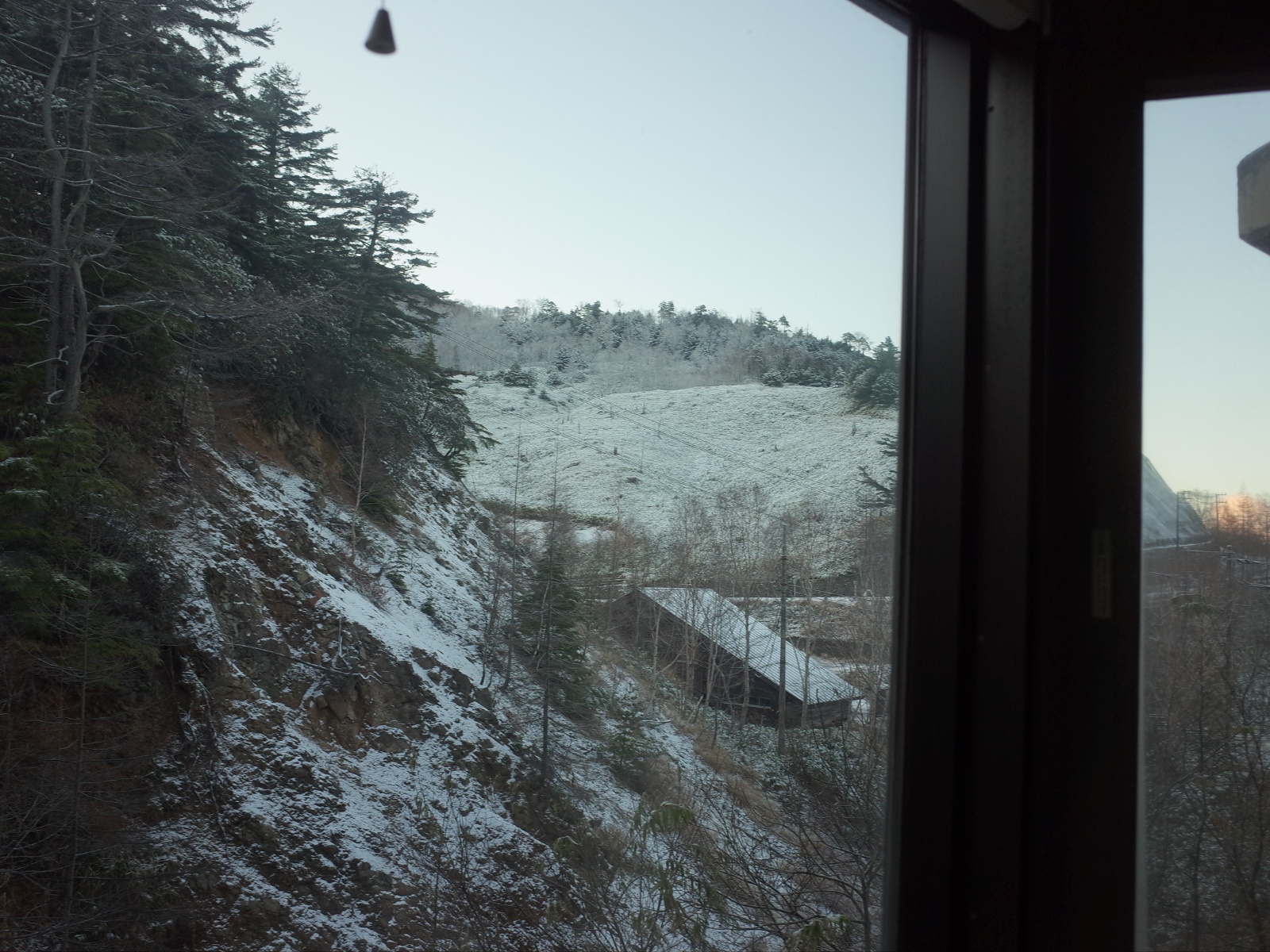 さて翌朝、部屋の窓から雪が積もっているのが見えた。