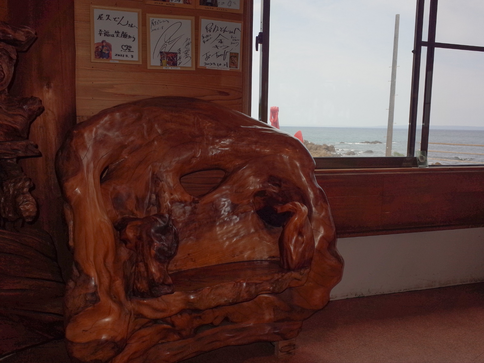屋久杉の椅子、他にも屋久杉を使った彫刻などが