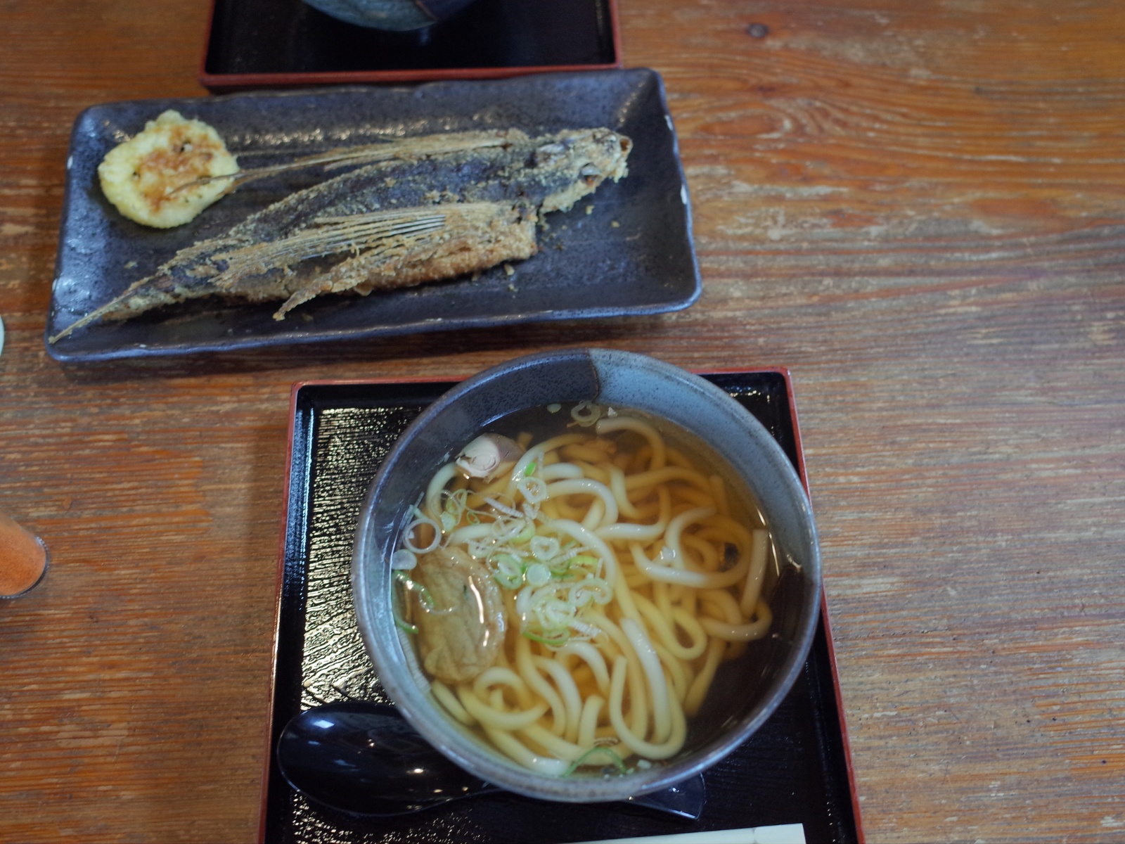 注文したのは「屋久島うどん」と‥「飛魚の姿揚げ」